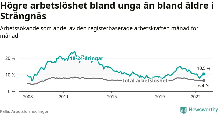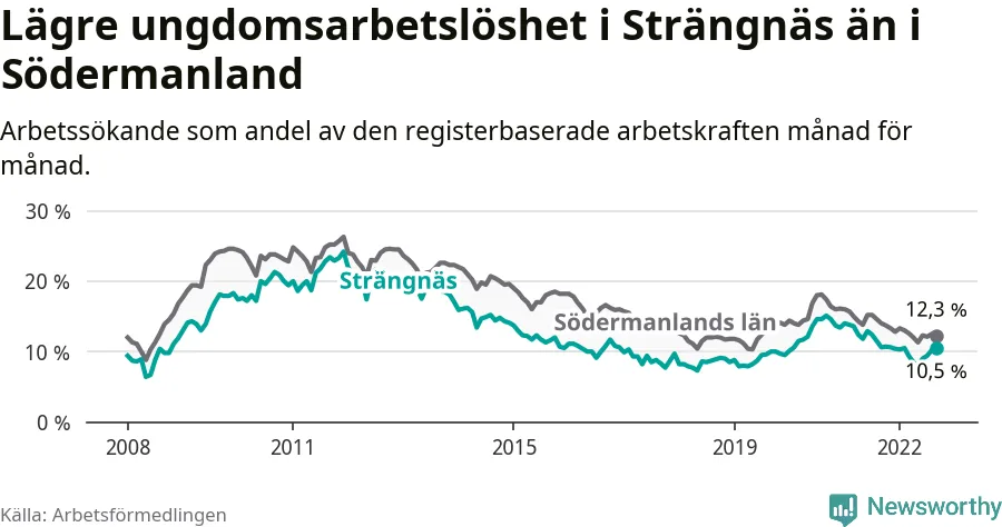 Graf: Arbetslöshet bland unga i Strängnäs kommun och Södermanlands län