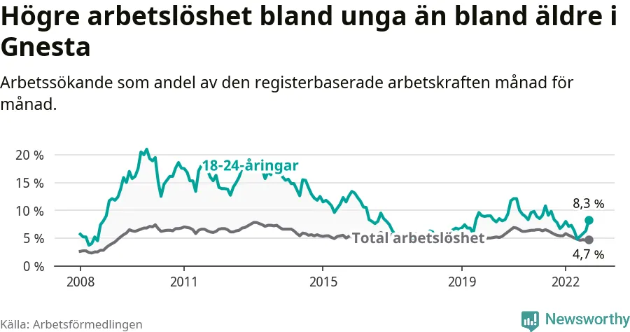 Graf: Arbetslöshet bland unga i Gnesta kommun och Södermanlands län