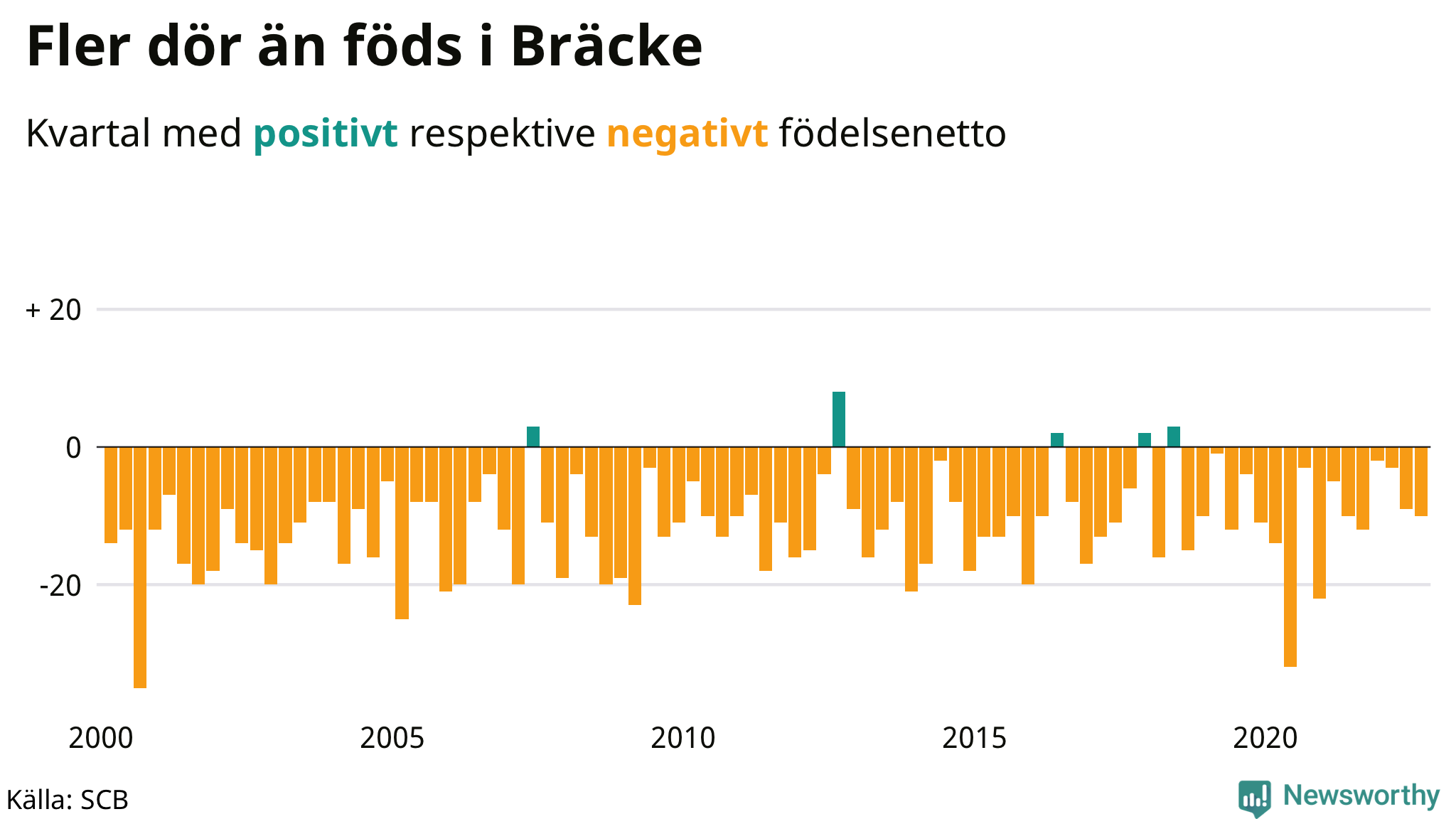 Det föddes tolv barn i Bräcke under tredje kvartalet, medan 22 personer avled. Det innebär att Bräcke hade ett negativt födelsenetto, vilket kommunen nästan alltid brukar ha.