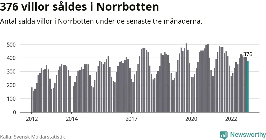 Mellan september och november såldes 376 villor i Norrbottens län. Det är relativt få sett till aktiviteten på bostadsmarknaden i länet under de senaste tolv månaderna, samt det historiska snittet för den här tiden på året.