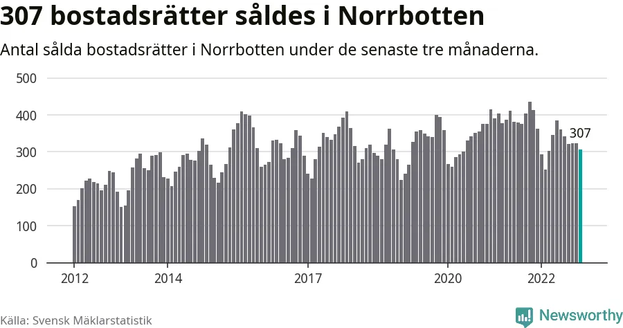Mellan september och november såldes 307 bostadsrätter i Norrbottens län. Det är relativt få sett till aktiviteten på bostadsmarknaden i länet under de senaste tolv månaderna, samt det historiska snittet för den här tiden på året.