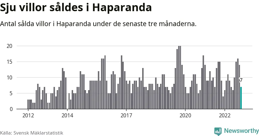 Mellan september och november gjordes sammanlagt sju affärer med villor i Haparanda kommun. Det kan jämföras med nio vid motsvarande tid i fjol.