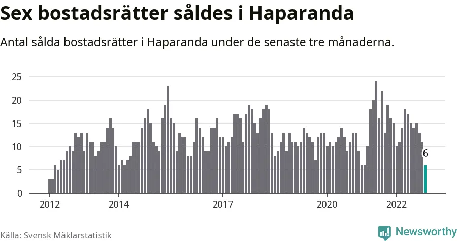 Mellan september och november gjordes sammanlagt sex affärer med bostadsrätter i Haparanda kommun. Det kan jämföras med 16 vid motsvarande tid i fjol.