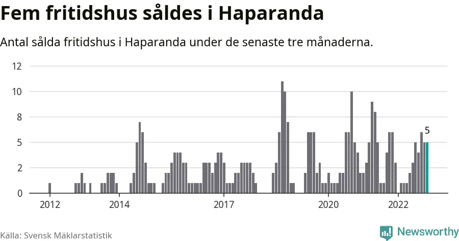 Mellan september och november gjordes sammanlagt fem affärer med fritidshus i Haparanda kommun. Det kan jämföras med sex vid motsvarande tid i fjol.