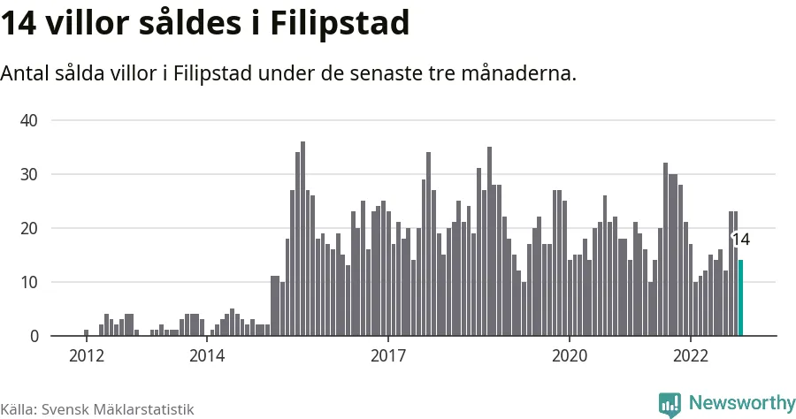 Mellan september och november gjordes sammanlagt 14 affärer med villor i Filipstads kommun. Det kan jämföras med 28 vid motsvarande tid i fjol.