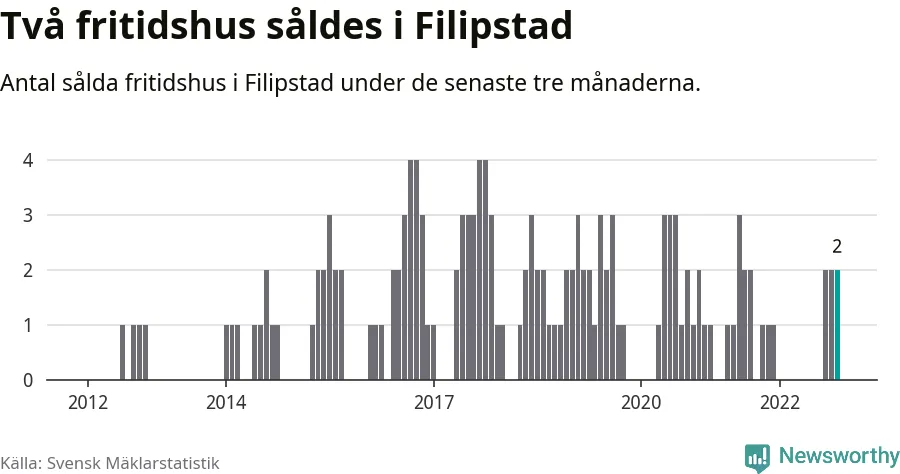 Mellan september och november gjordes sammanlagt två affärer med fritidshus i Filipstads kommun. Det kan jämföras med ett vid motsvarande tid i fjol.