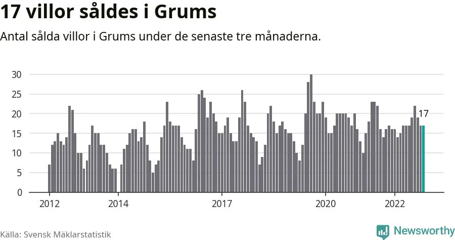 Mellan september och november gjordes sammanlagt 17 affärer med villor i Grums kommun. Det är lika många affärer som vid motsvarande tid i fjol.