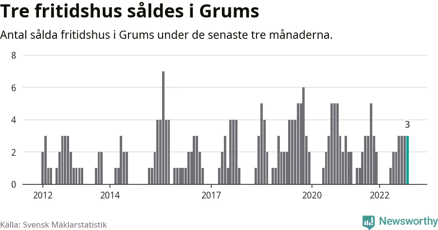 Mellan september och november gjordes sammanlagt tre affärer med fritidshus i Grums kommun. Det är lika många affärer som vid motsvarande tid i fjol.