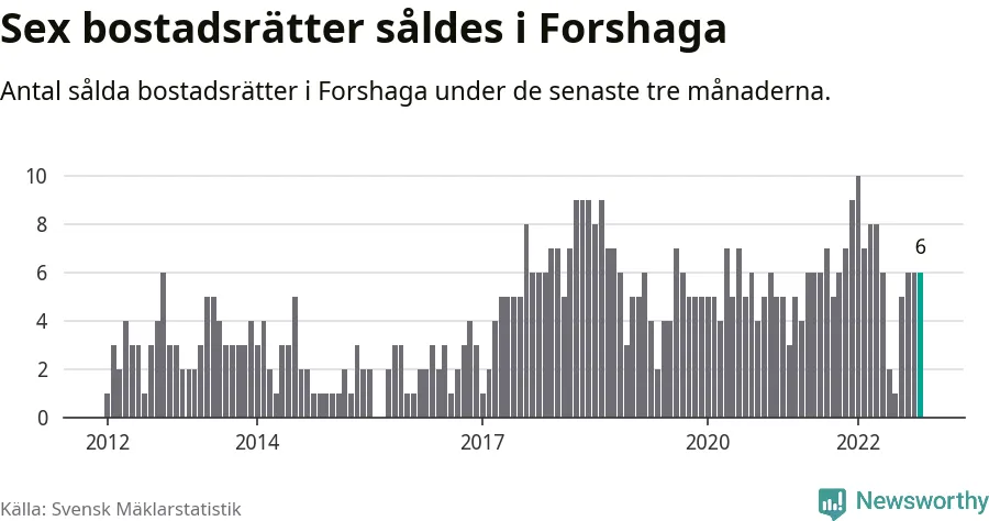 Mellan september och november gjordes sammanlagt sex affärer med bostadsrätter i Forshaga kommun. Det kan jämföras med sju vid motsvarande tid i fjol.