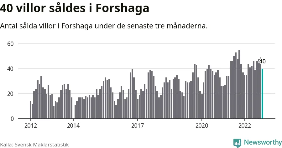 Mellan september och november gjordes sammanlagt 40 affärer med villor i Forshaga kommun. Det kan jämföras med 44 vid motsvarande tid i fjol.