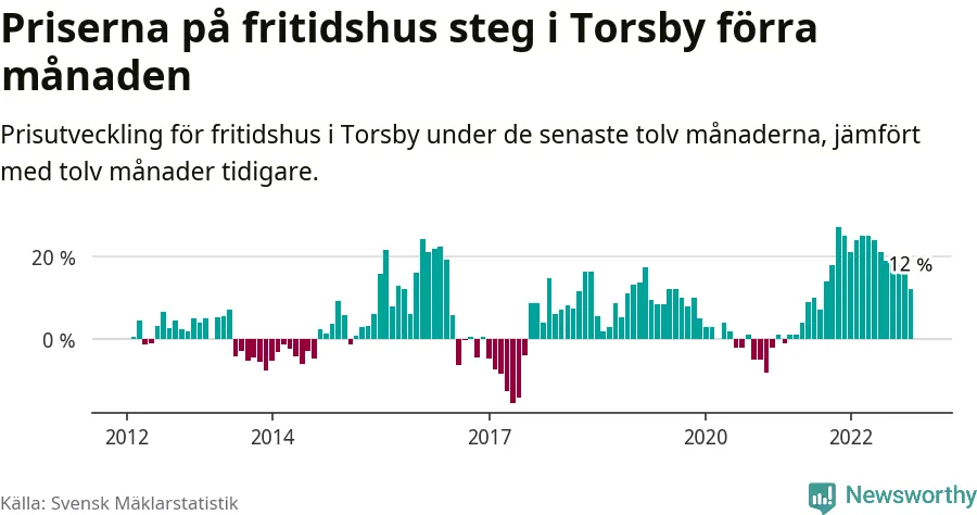 Priserna på fritidshus har gått upp i Torsby kommun. Medelpriset på försäljningarna under de senaste tolv månaderna visar på en uppgång med 12 procent.
