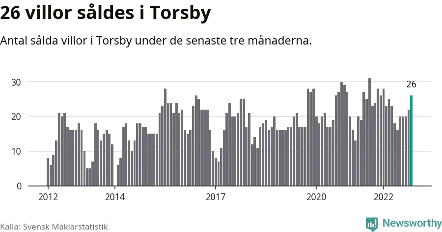 Mellan september och november gjordes sammanlagt 26 affärer med villor i Torsby kommun. Det kan jämföras med 28 vid motsvarande tid i fjol.