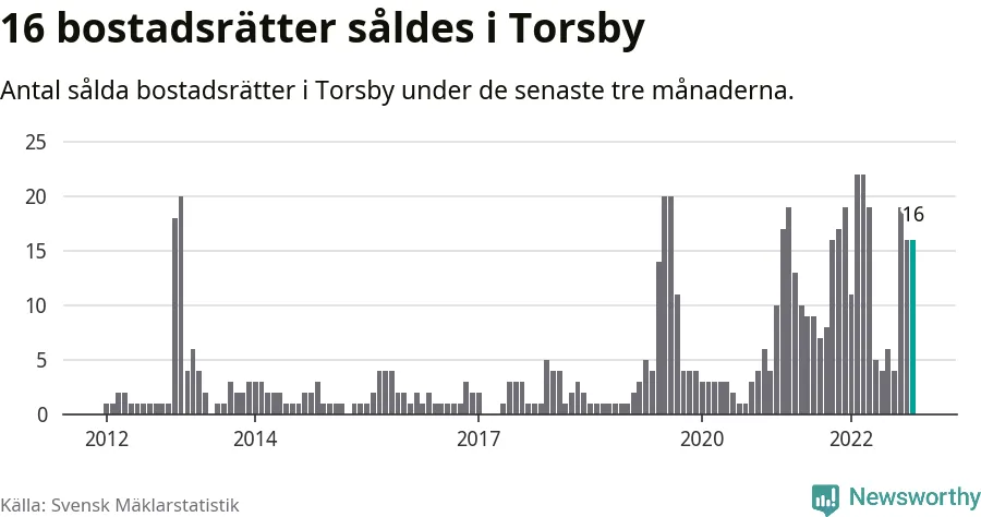 Mellan september och november gjordes sammanlagt 16 affärer med bostadsrätter i Torsby kommun. Det kan jämföras med 17 vid motsvarande tid i fjol.