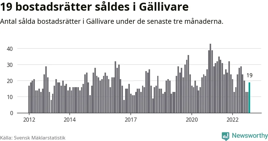 Mellan september och november gjordes sammanlagt 19 affärer med bostadsrätter i Gällivare kommun. Det kan jämföras med 32 vid motsvarande tid i fjol.