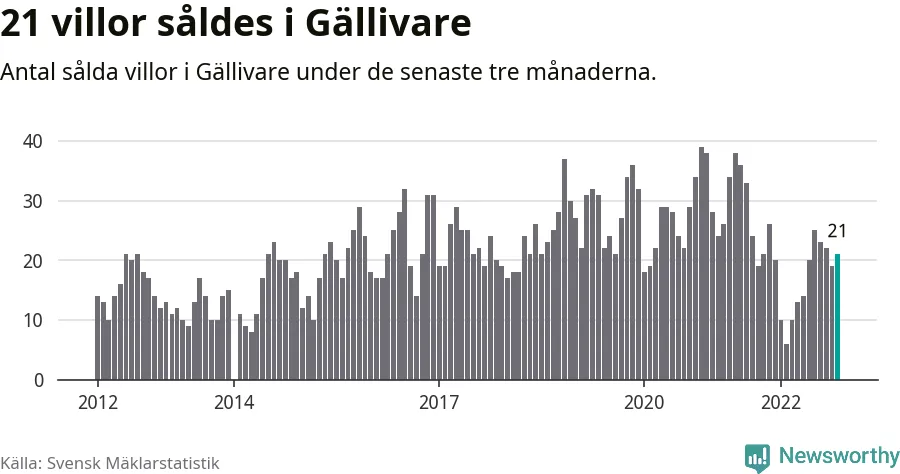 Mellan september och november gjordes sammanlagt 21 affärer med villor i Gällivare kommun. Det kan jämföras med 26 vid motsvarande tid i fjol.