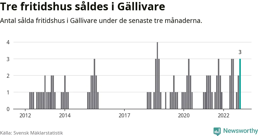 Mellan september och november gjordes sammanlagt tre affärer med fritidshus i Gällivare kommun. Det kan jämföras med två vid motsvarande tid i fjol.