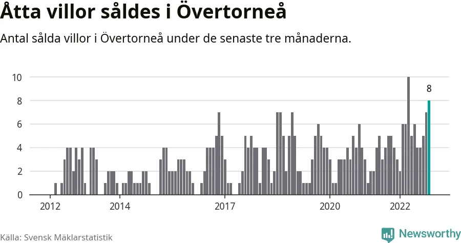 Mellan september och november gjordes sammanlagt åtta affärer med villor i Övertorneå kommun. Det kan jämföras med fyra vid motsvarande tid i fjol.