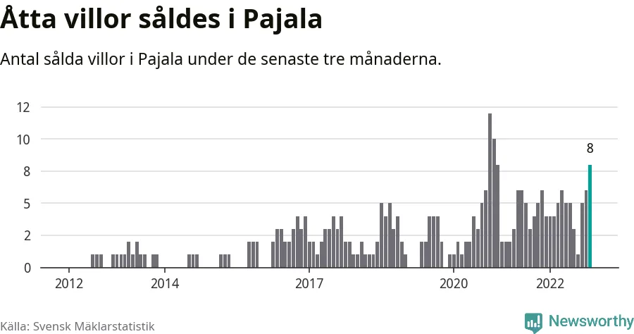 Mellan september och november gjordes sammanlagt åtta affärer med villor i Pajala kommun. Det kan jämföras med sex vid motsvarande tid i fjol.