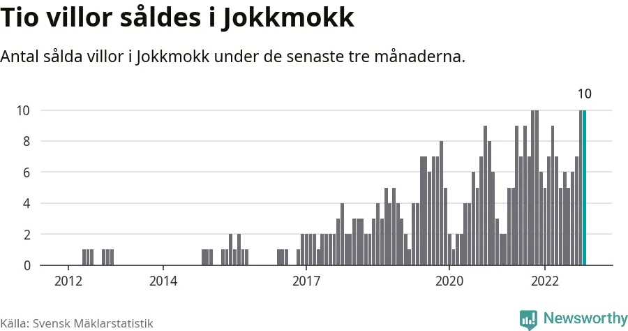 Mellan september och november gjordes sammanlagt tio affärer med villor i Jokkmokks kommun. Det är lika många affärer som vid motsvarande tid i fjol.