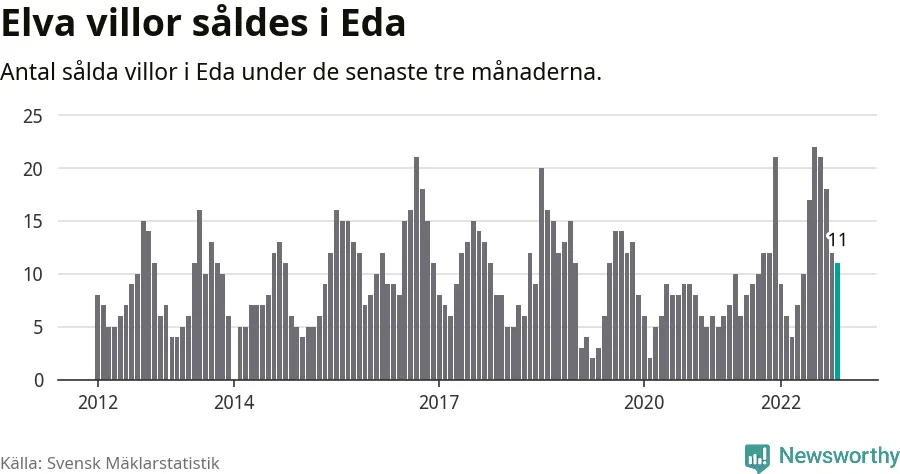 Mellan september och november gjordes sammanlagt elva affärer med villor i Eda kommun. Det kan jämföras med tolv vid motsvarande tid i fjol.