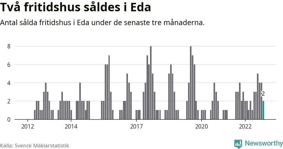Mellan september och november gjordes sammanlagt två affärer med fritidshus i Eda kommun. Det är lika många affärer som vid motsvarande tid i fjol.