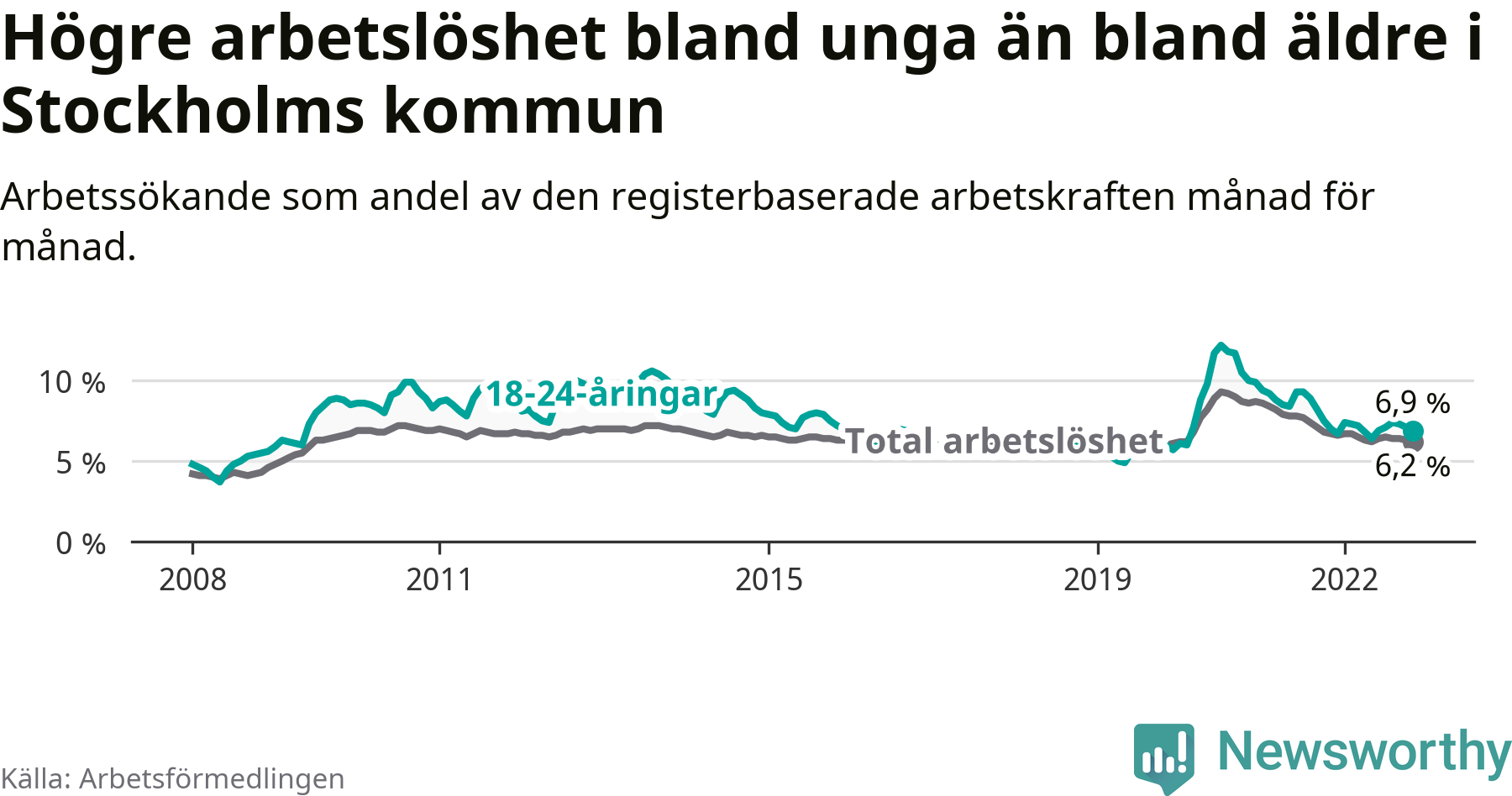 | Bland ungdomar | 6,9 % | −0,1 % ▼ | 6,9 % | −0,3 % ▼ | 8,1 % | −0,8 % ▼ |