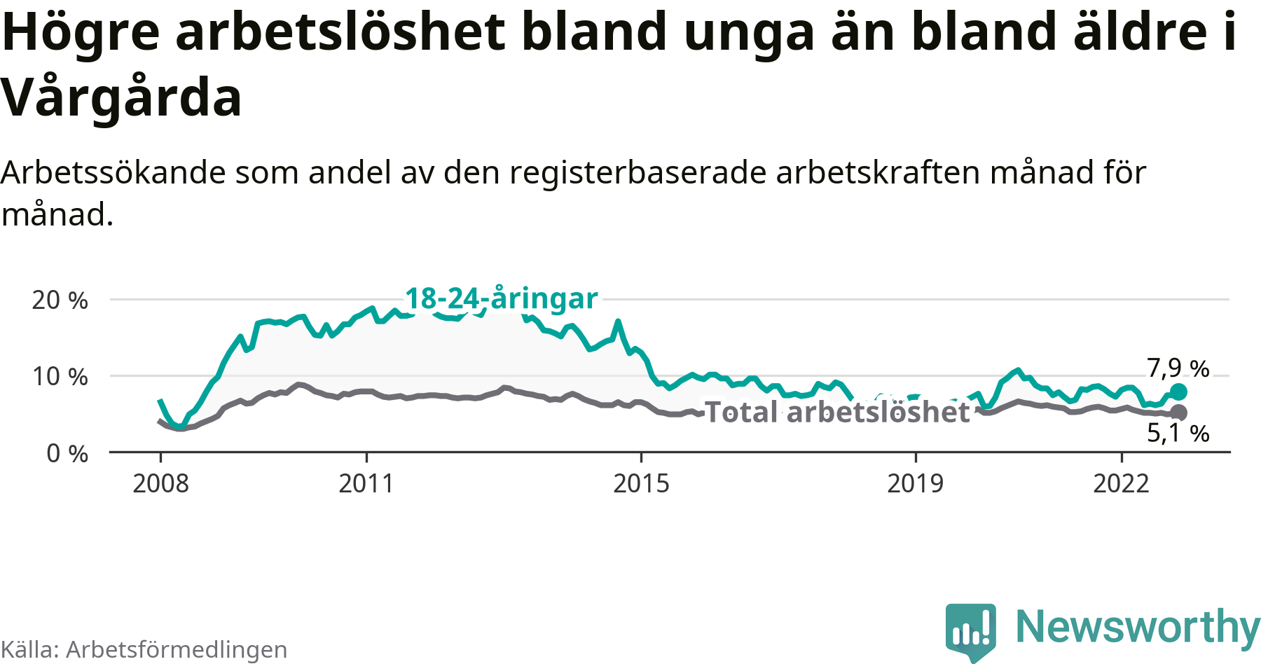 Medan Vårgårda har lägre total arbetslöshet än Västra Götaland, ligger ungdomsarbetslösheten 1,0 procentenheter högre i Vårgårda.