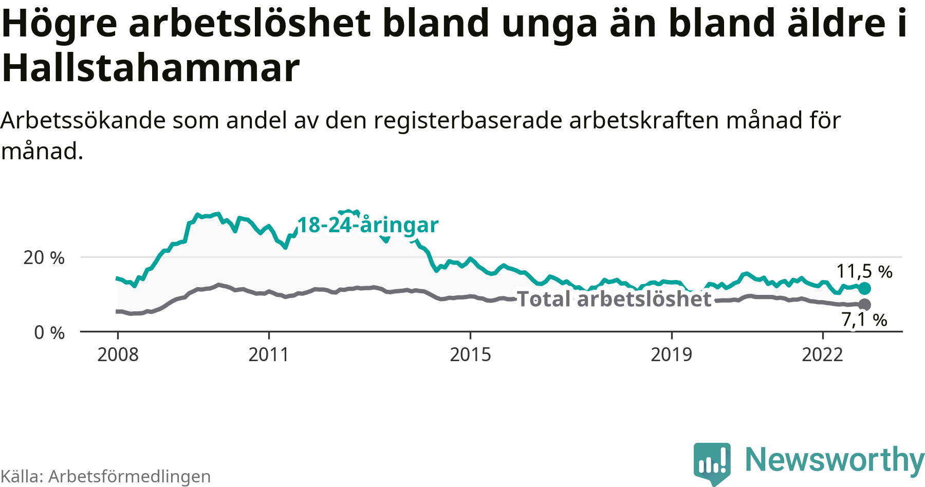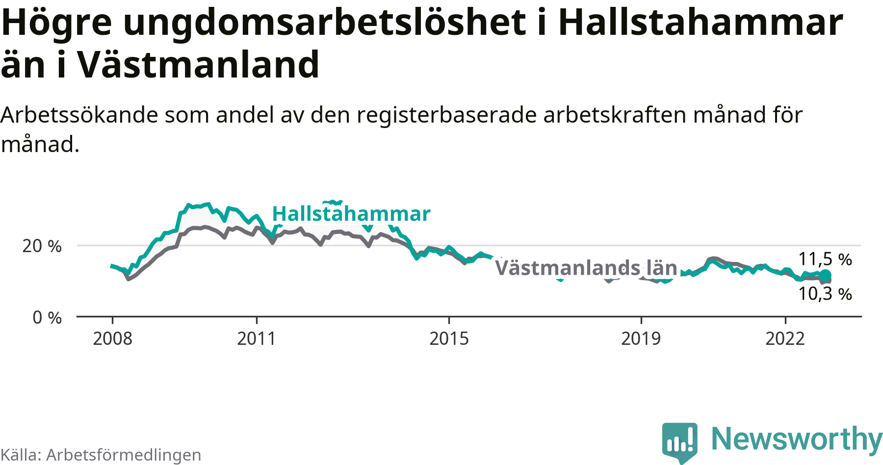 Medan Hallstahammar har lägre total arbetslöshet än Västmanland, ligger ungdomsarbetslösheten 1,2 procentenheter högre i Hallstahammar.