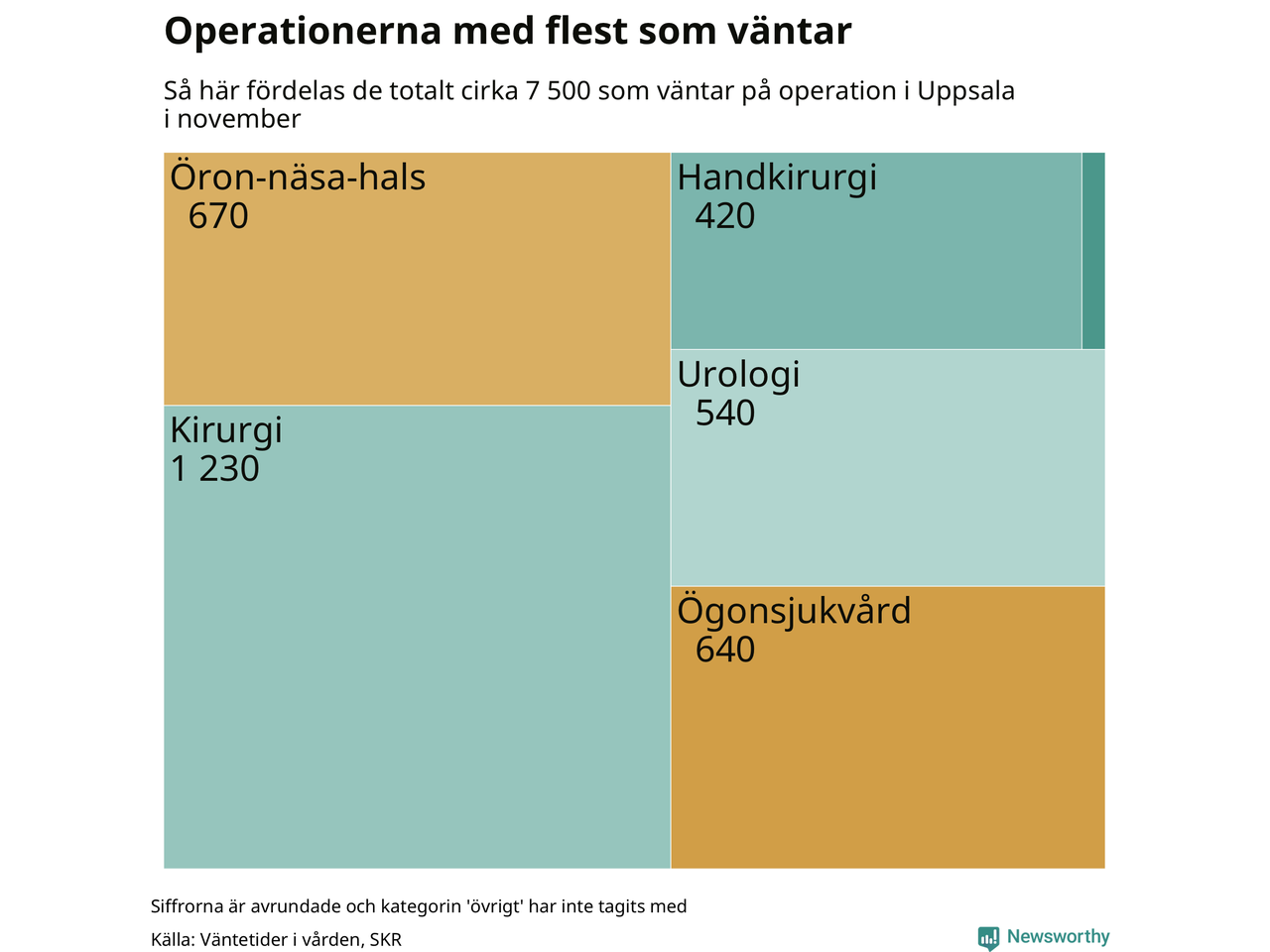 Sammanlagt väntade 7 457 patienter på operation i Uppsala län under november månad.