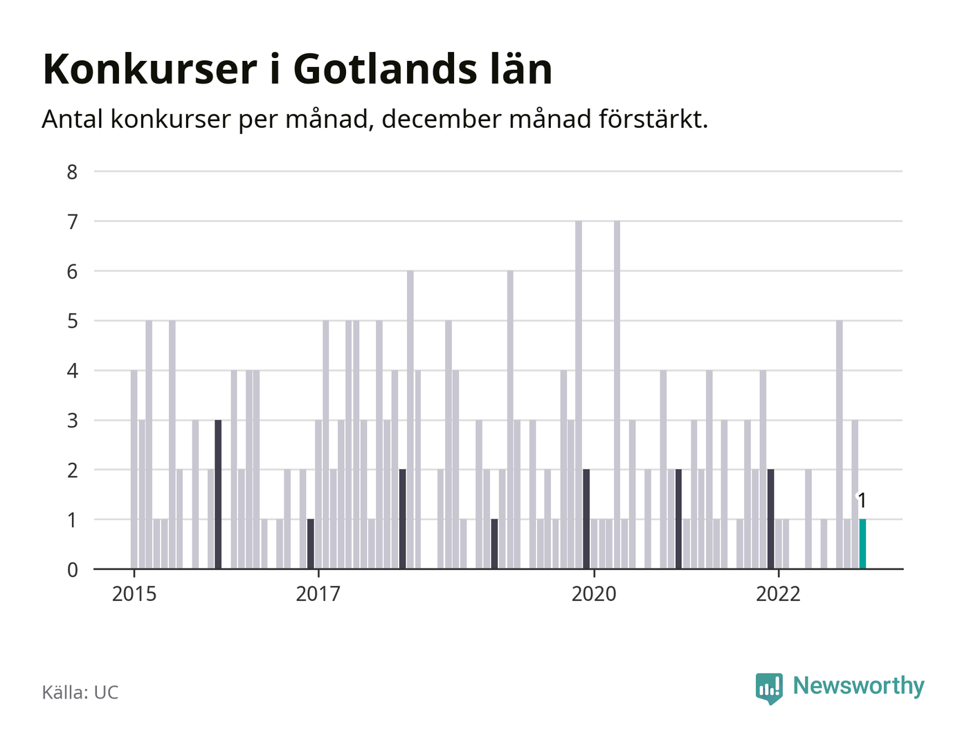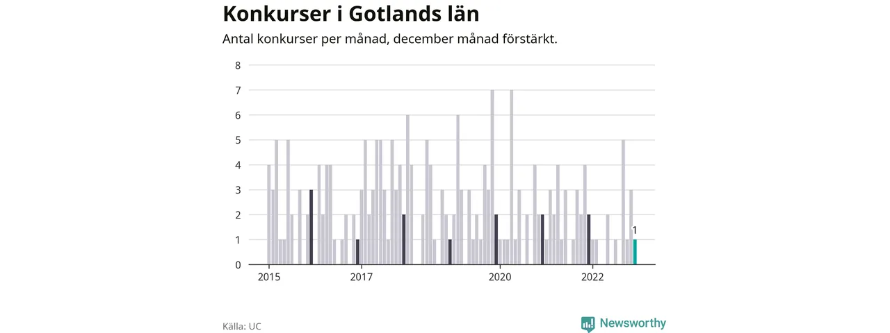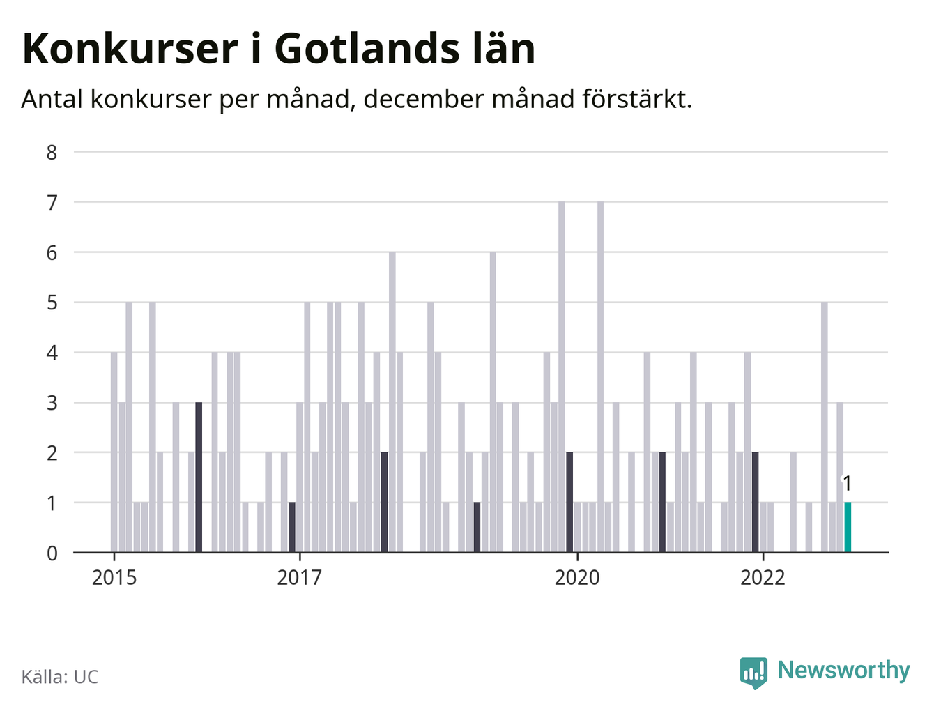 Under december månad gick ett bolag i konkurs i Gotlands län. . I fjol noterades två konkurser under december.