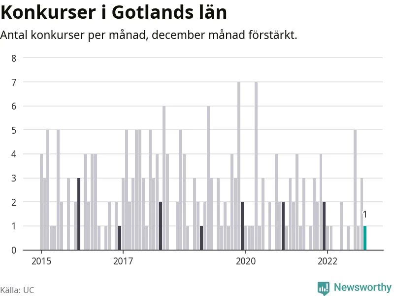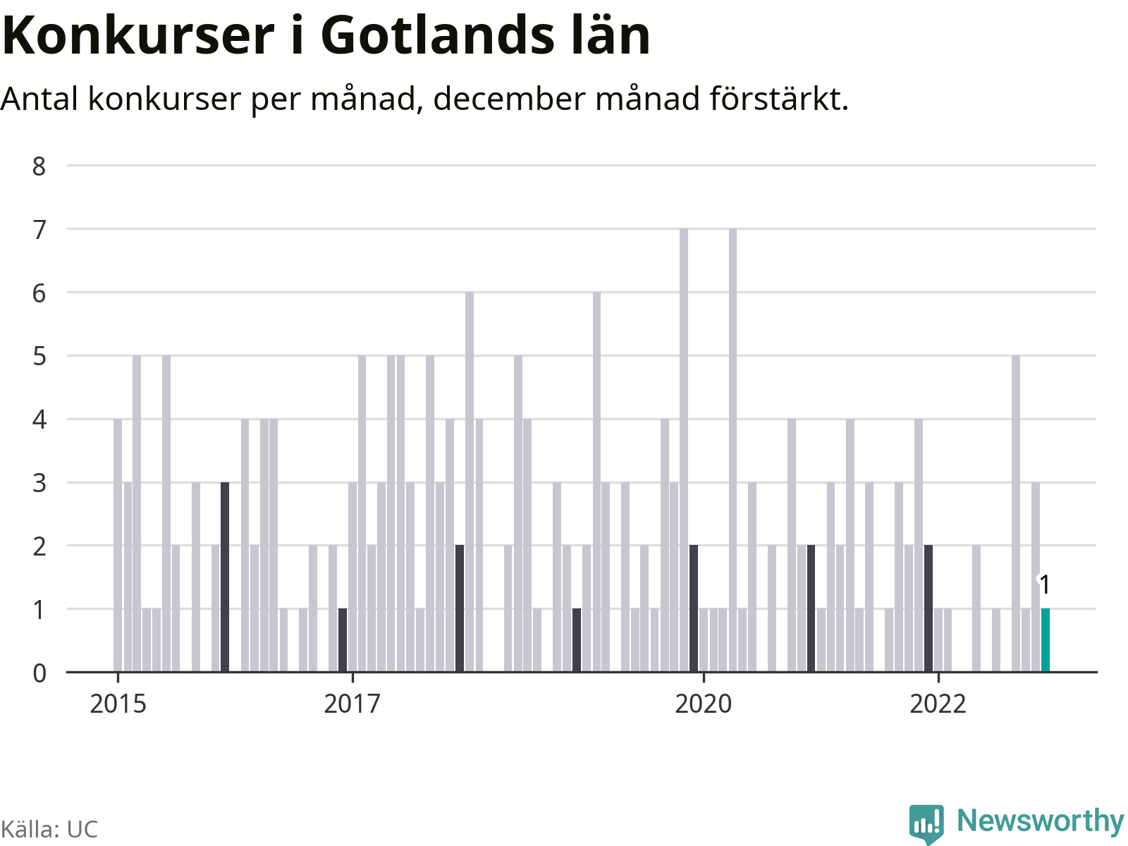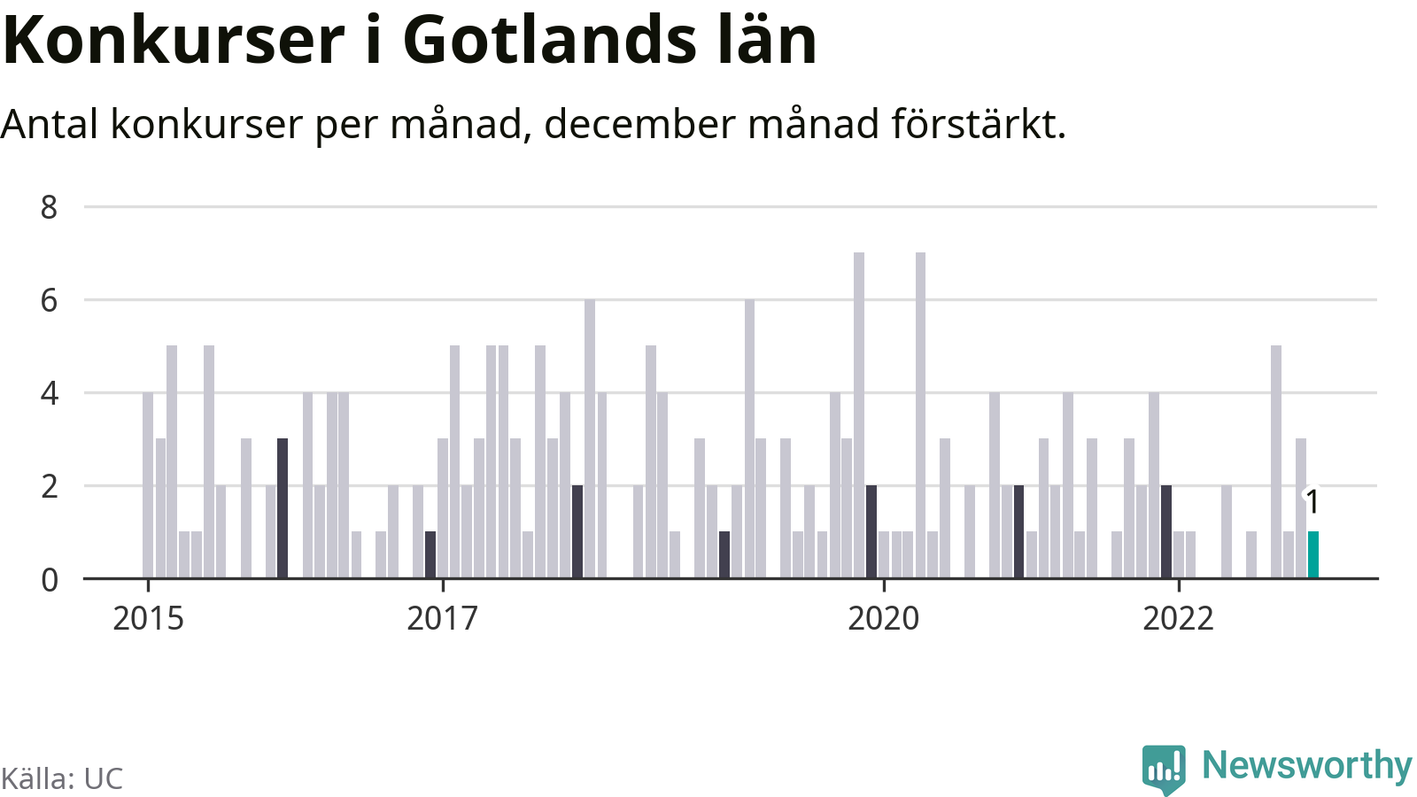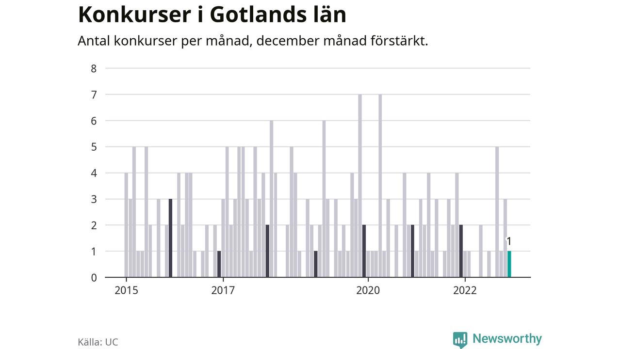 Under december månad gick ett bolag i konkurs i Gotlands län. . I fjol noterades två konkurser under december.