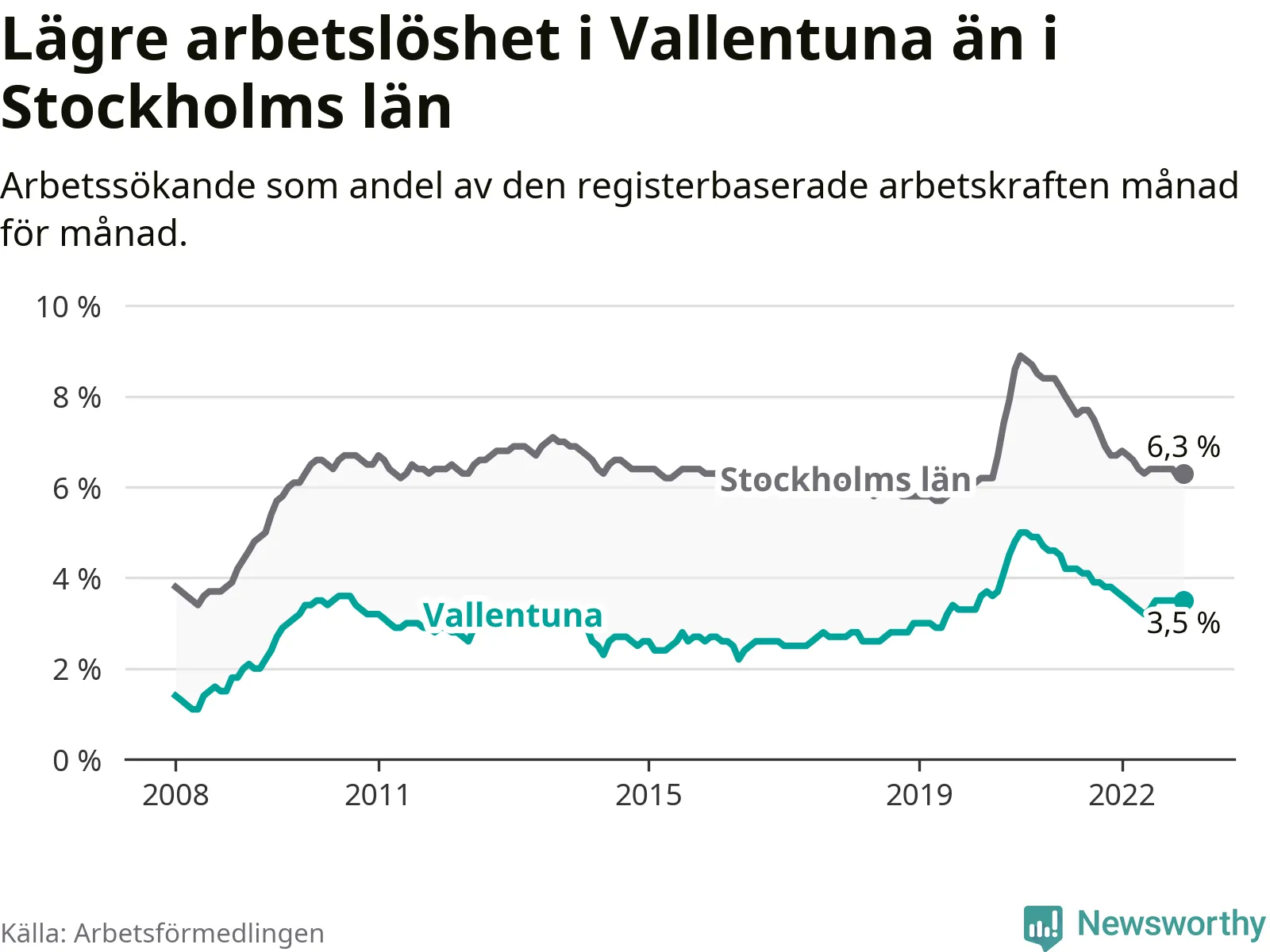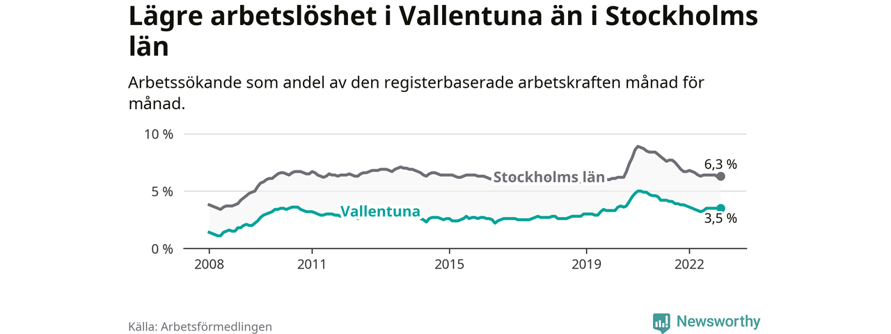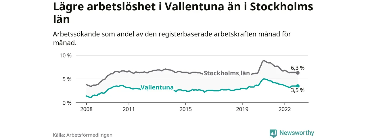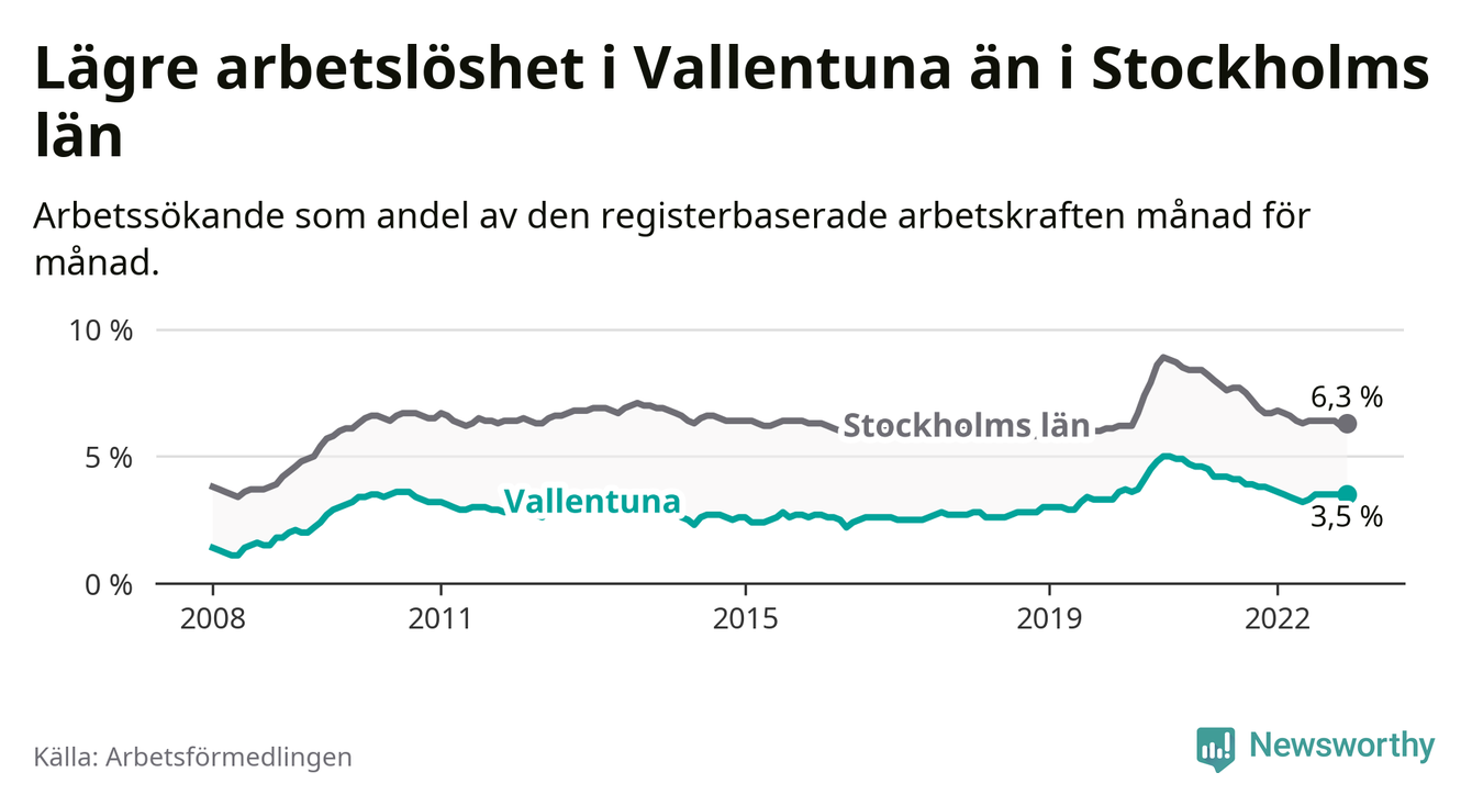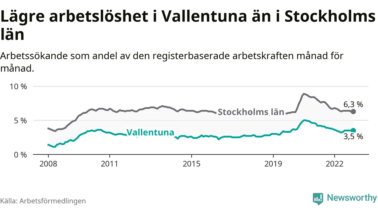 Graf: Arbetslöshet i Vallentuna kommun och Stockholms län