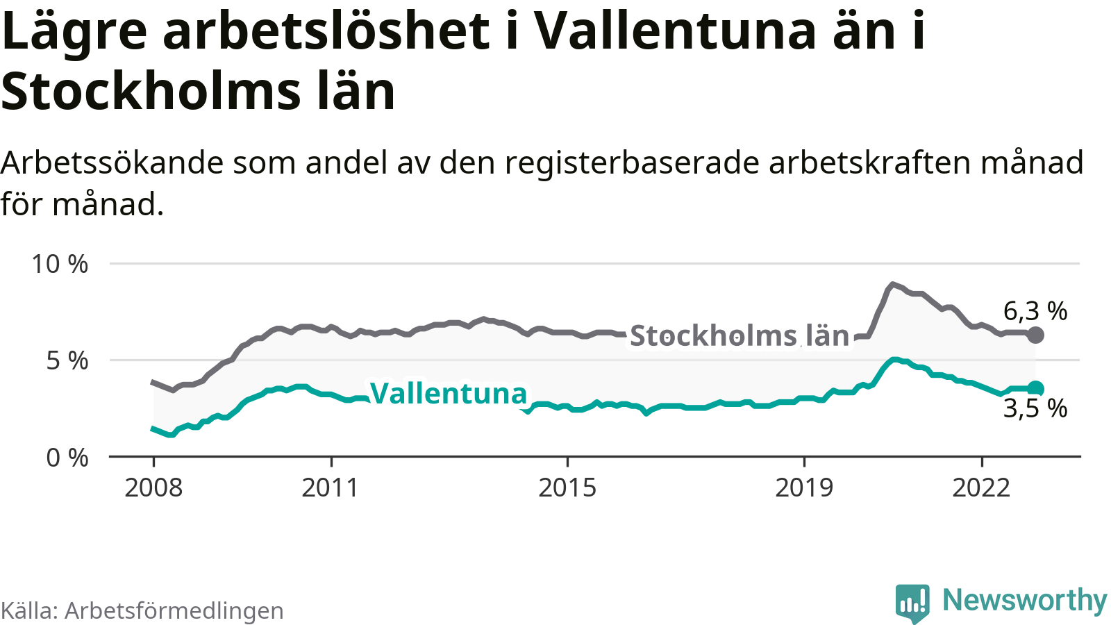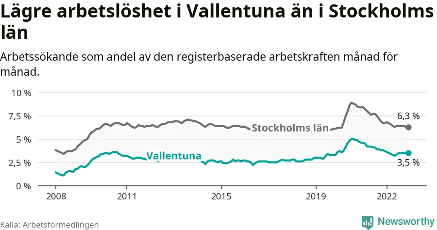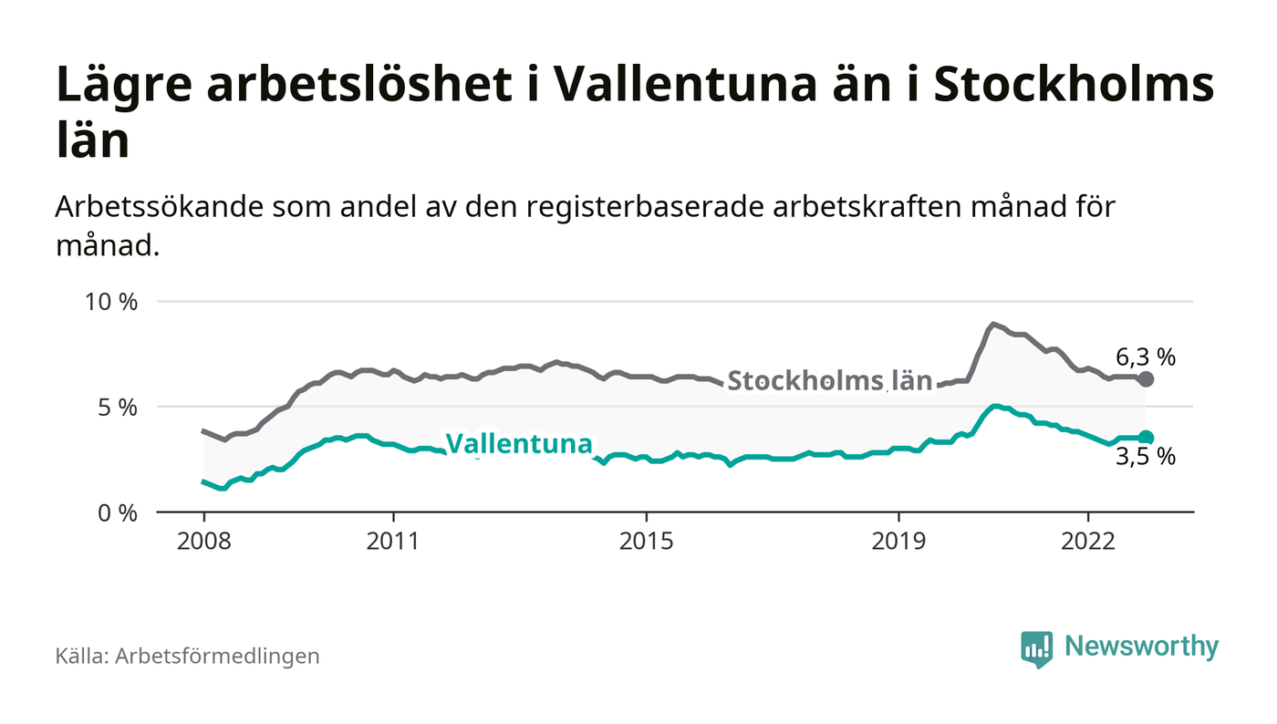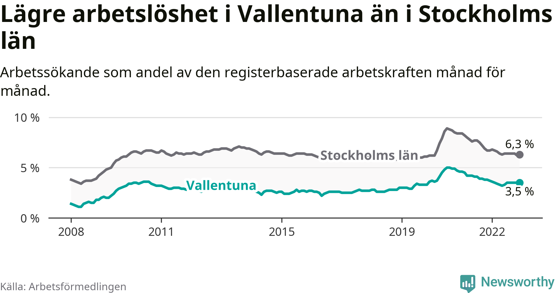 Graf: Arbetslöshet i Vallentuna kommun och Stockholms län