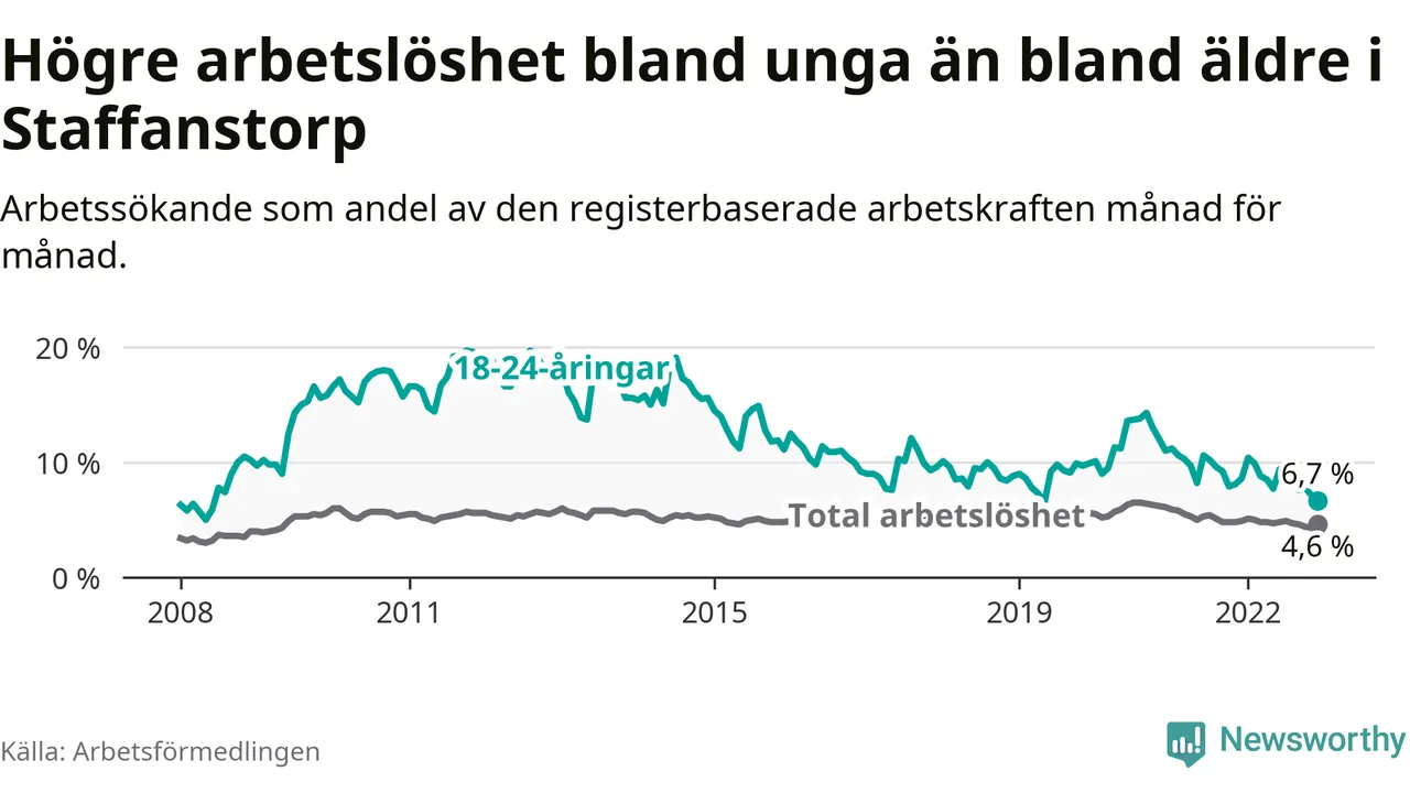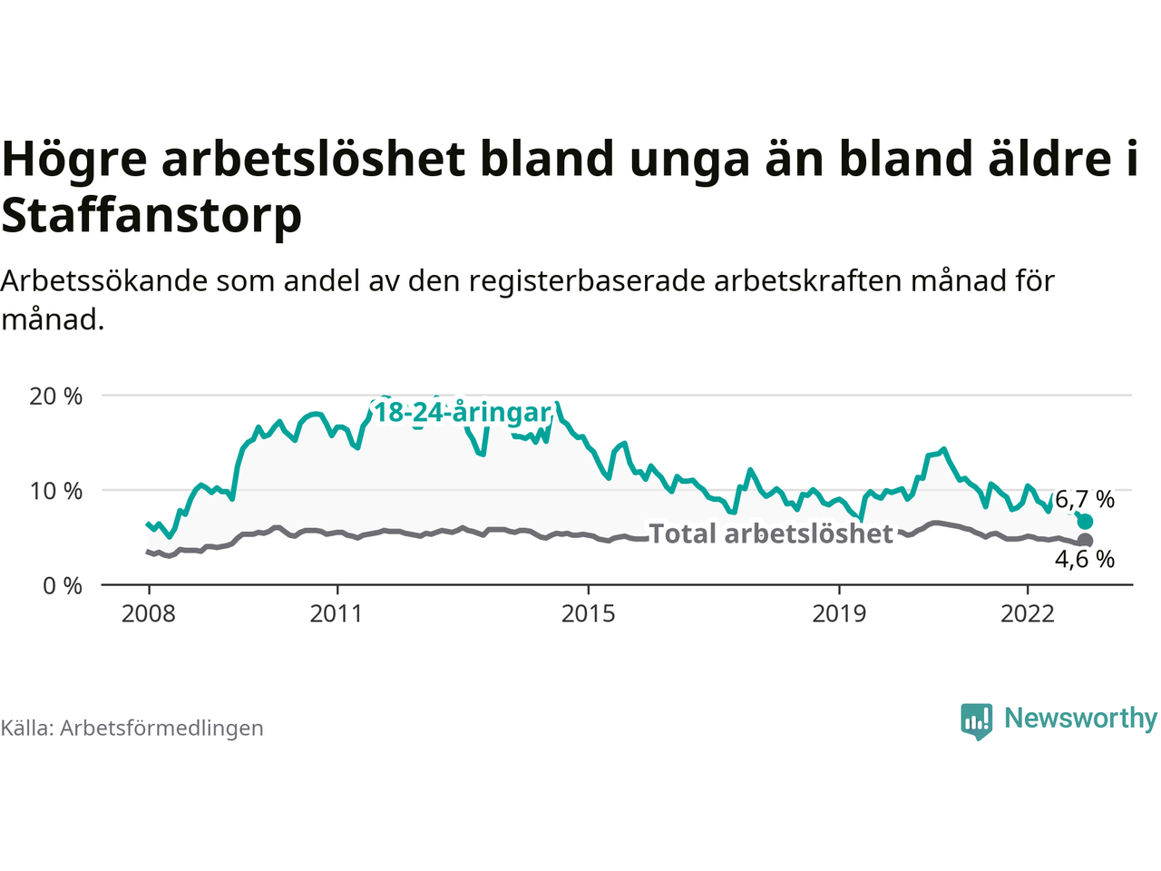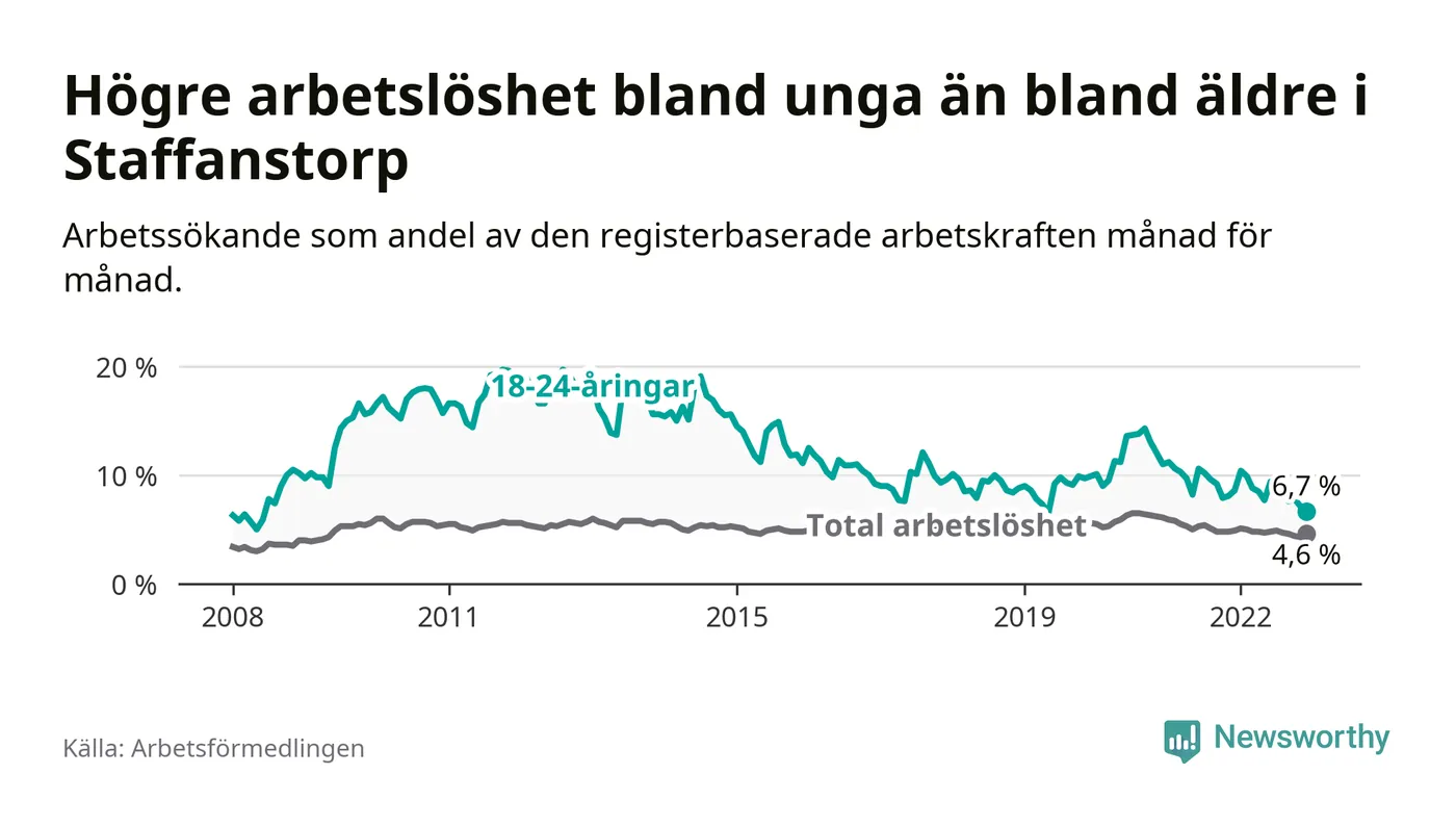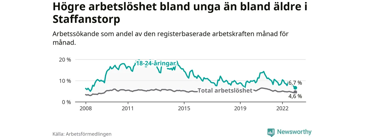 Graf: Arbetslöshet bland unga i Staffanstorps kommun och Skåne län