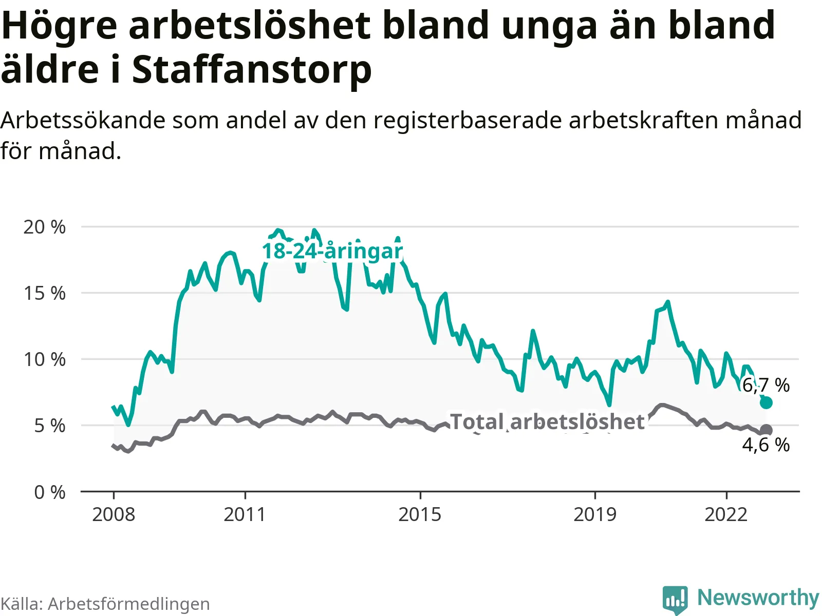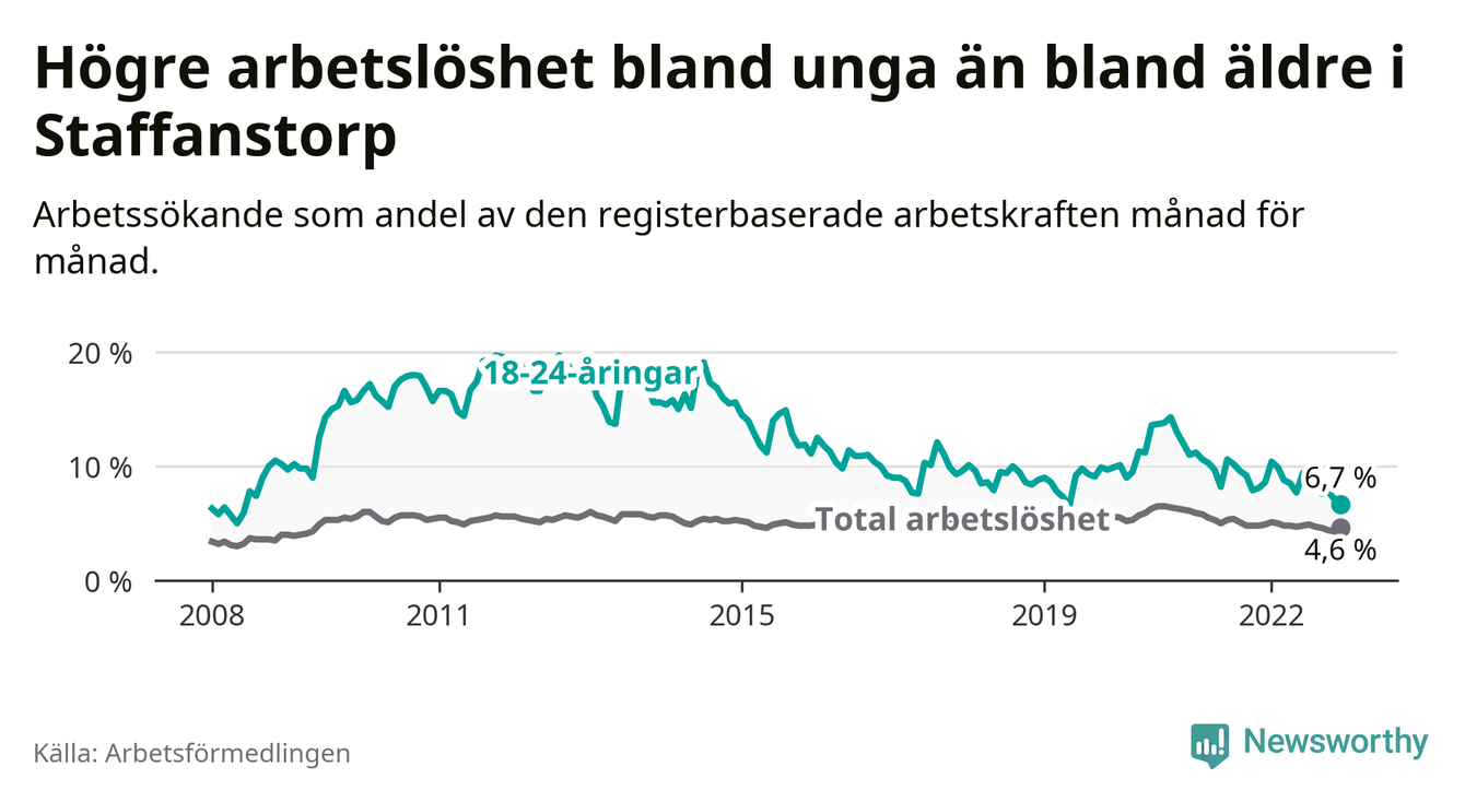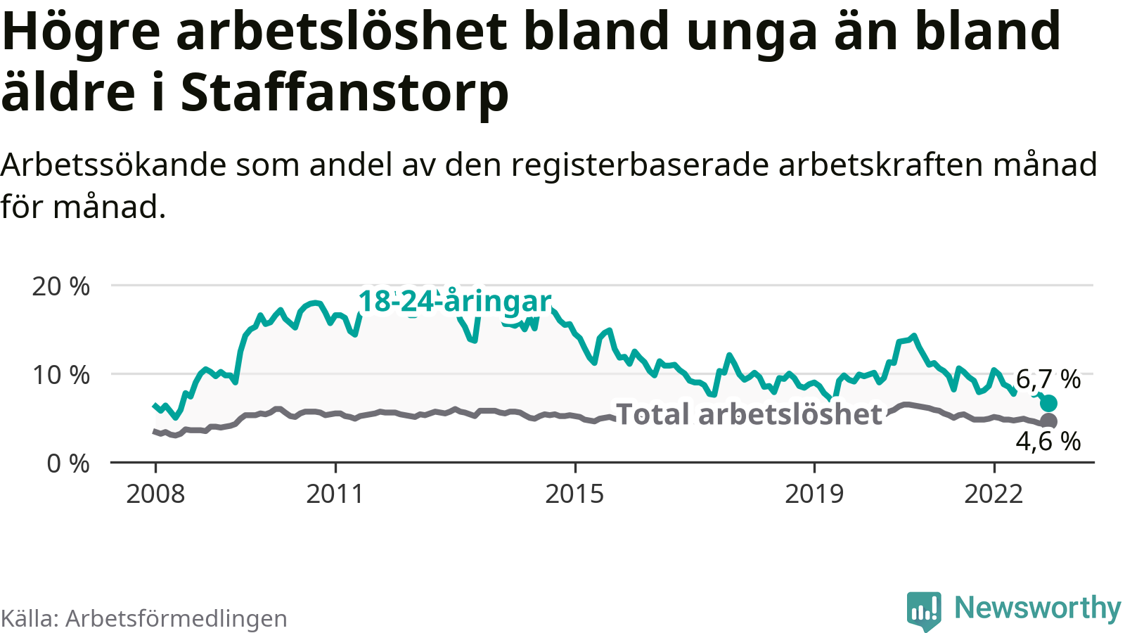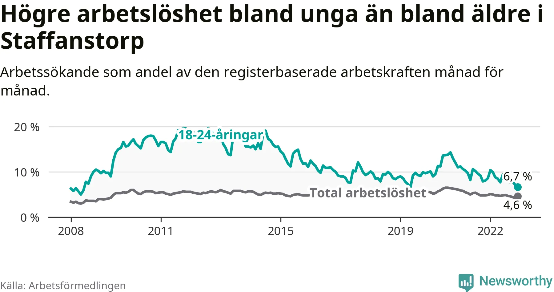 Graf: Arbetslöshet bland unga i Staffanstorps kommun och Skåne län