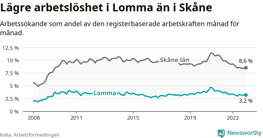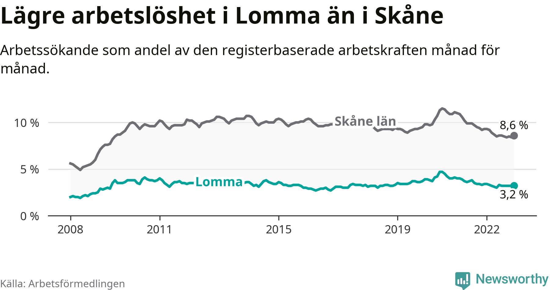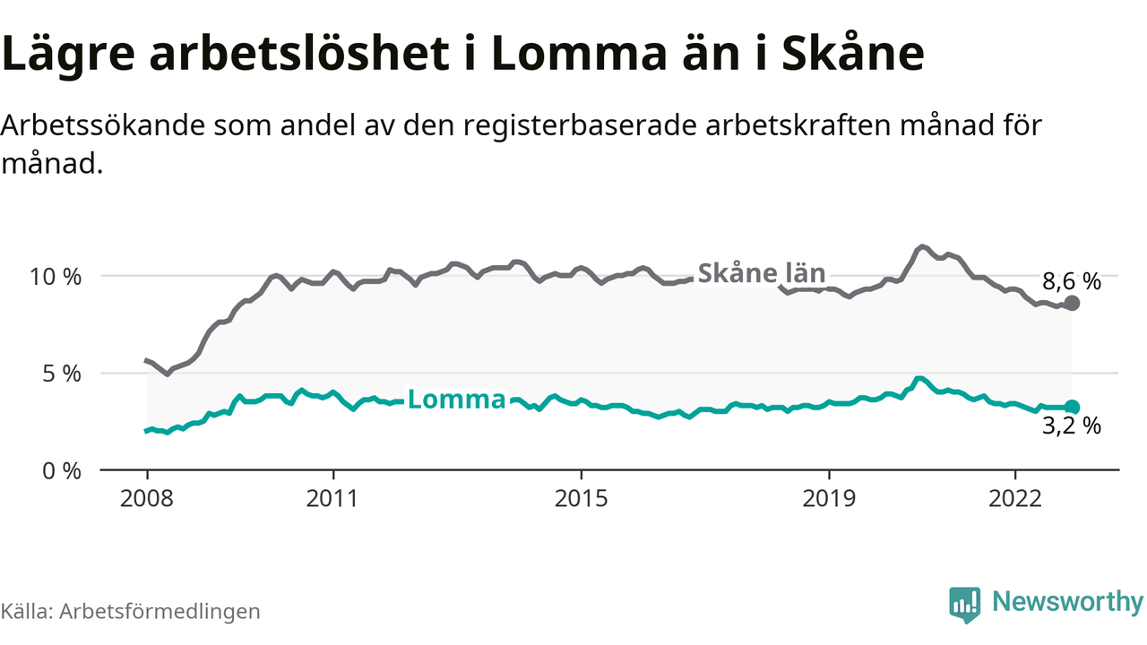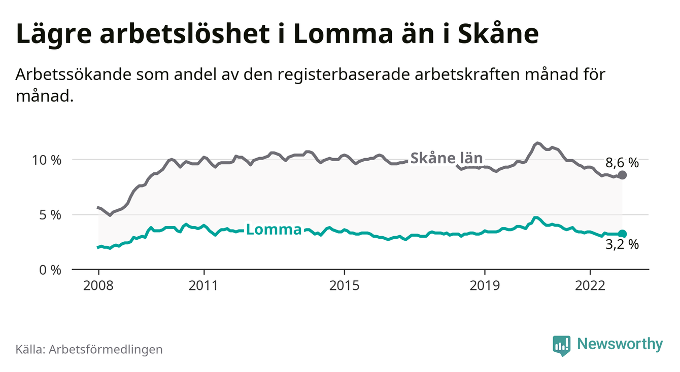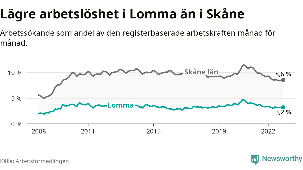 Graf: Arbetslöshet i Lomma kommun och Skåne län