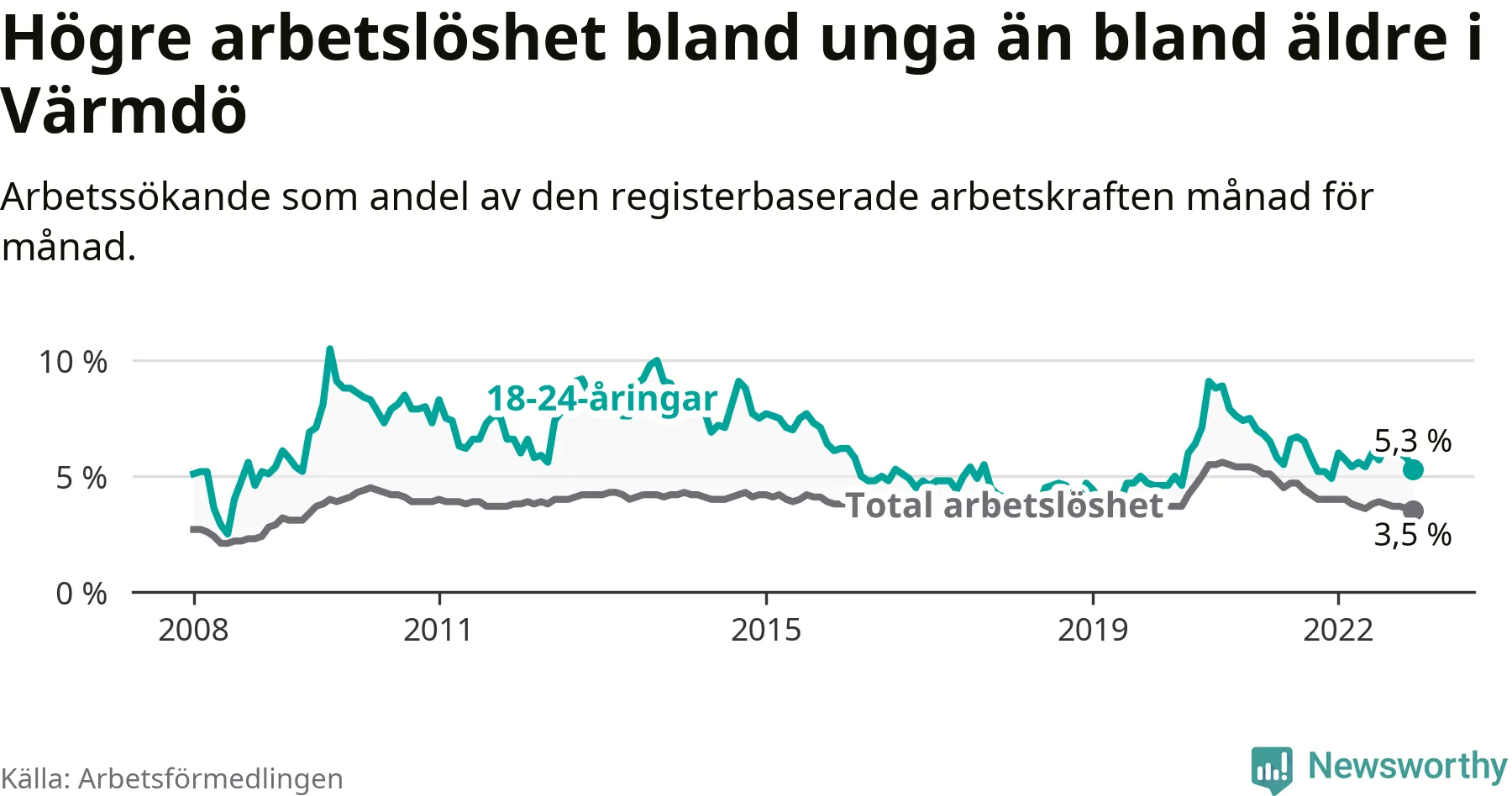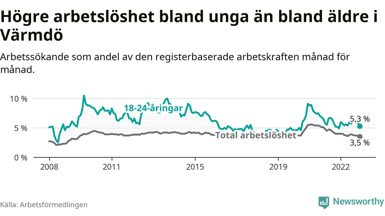 | Bland ungdomar | 5,3 % | +0,4 % ▲ | 6,8 % | −0,1 % ▼ | 8,1 % | −0,6 % ▼ |