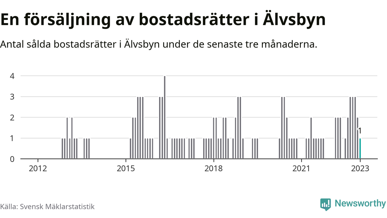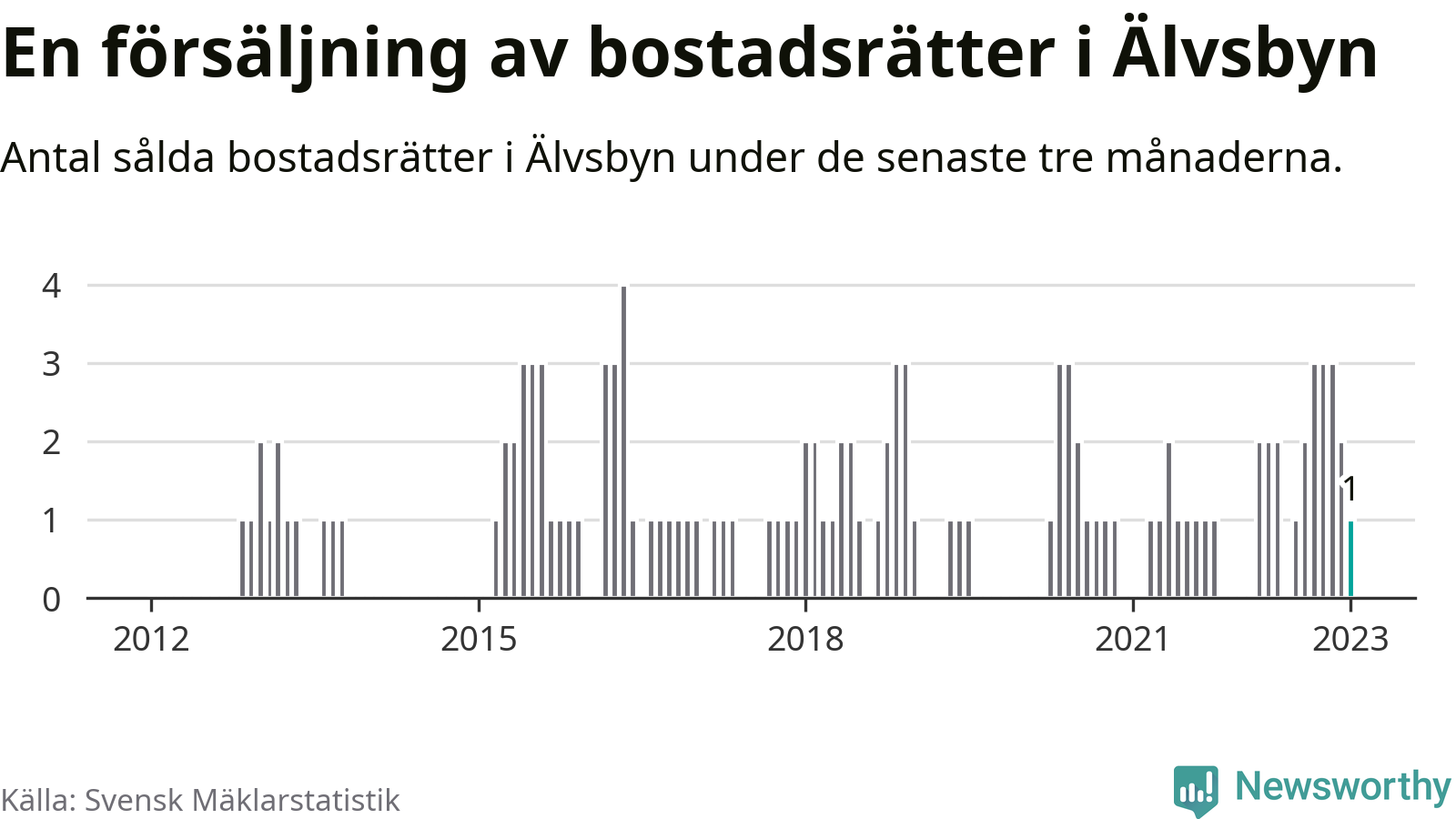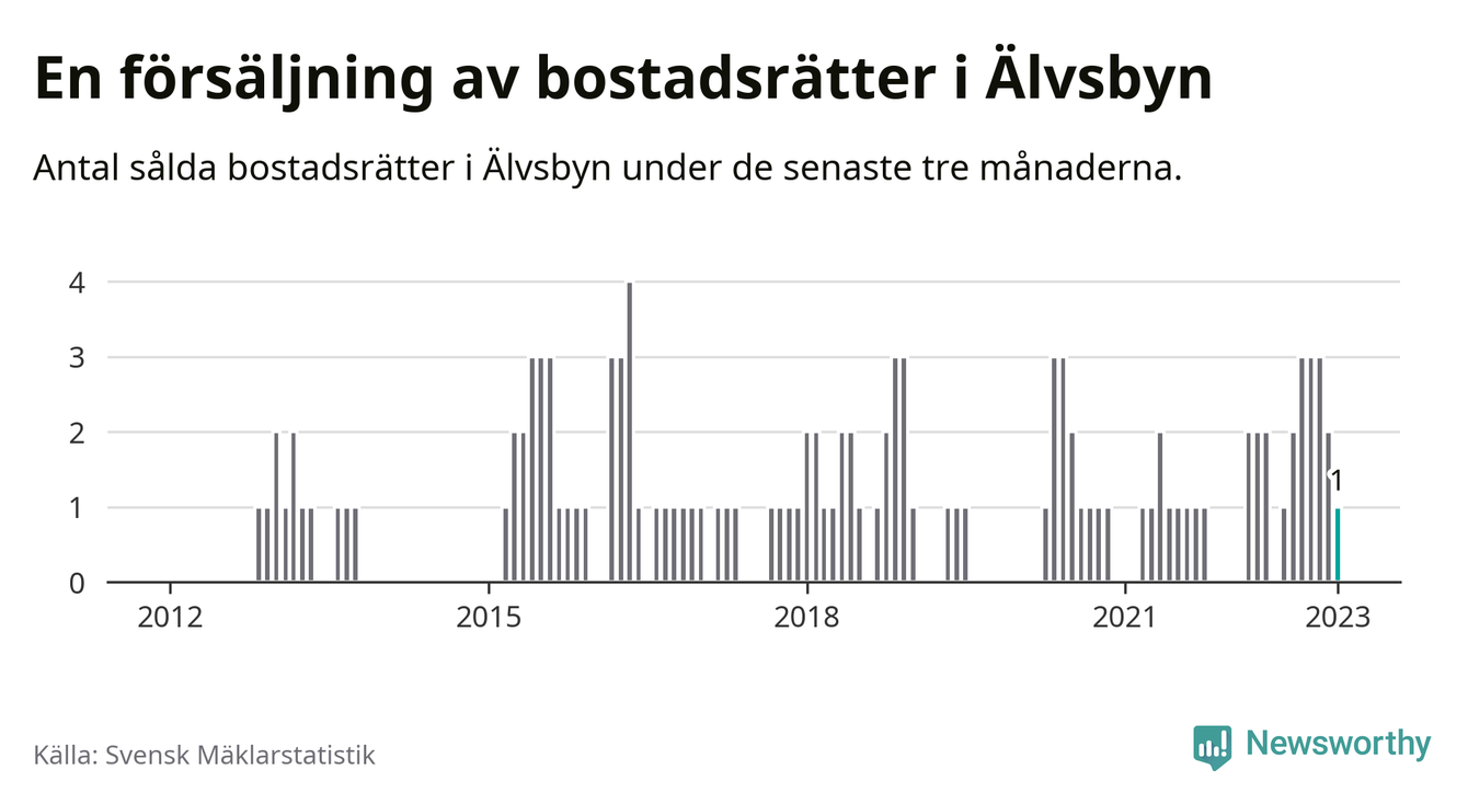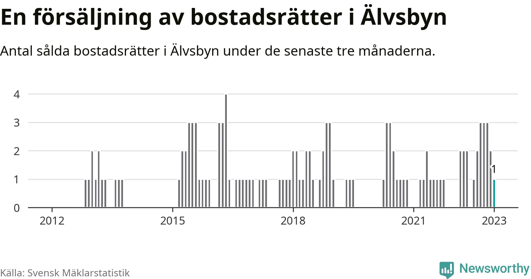 Mellan november och januari gjordes sammanlagt en affär med bostadsrätter i Älvsbyns kommun.