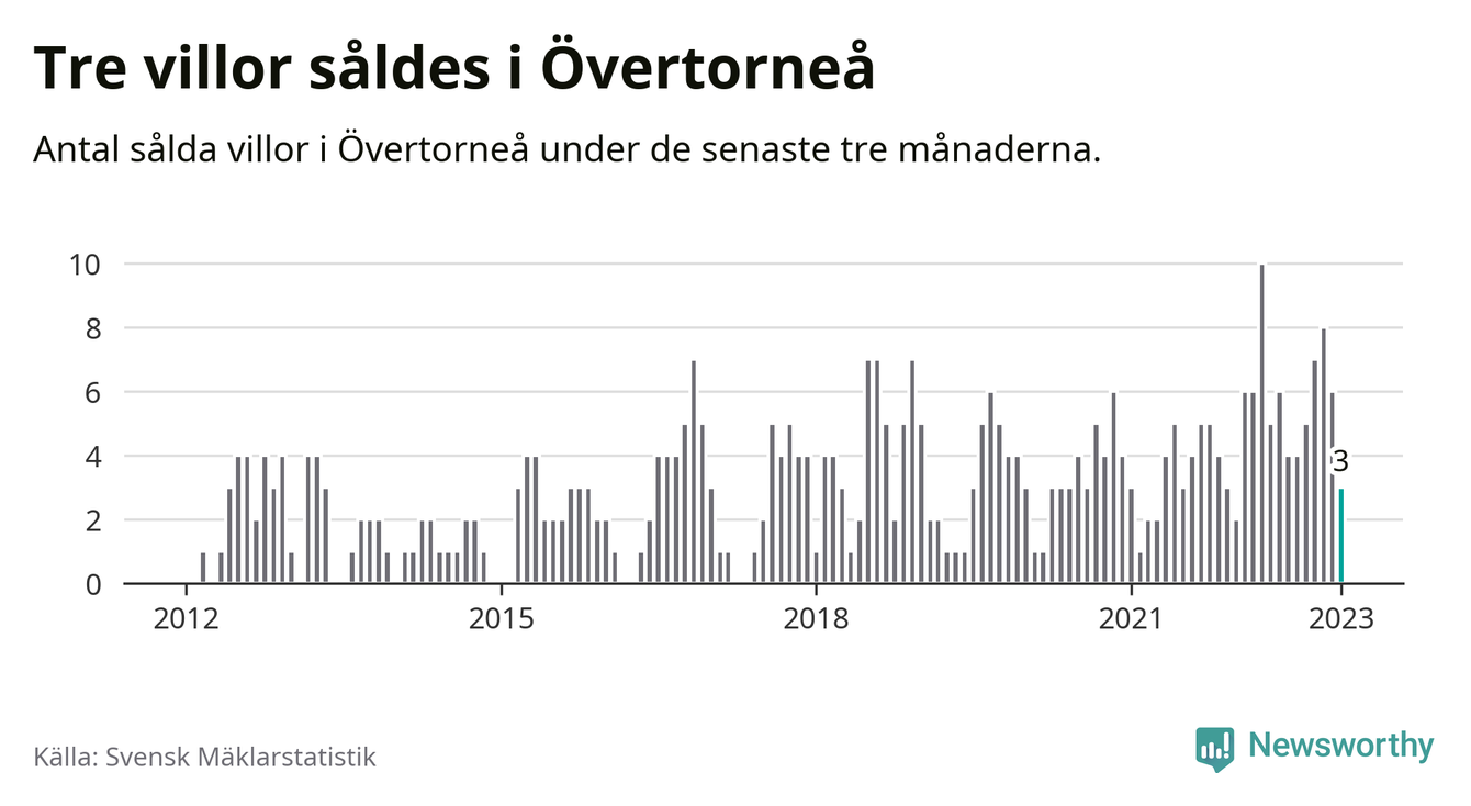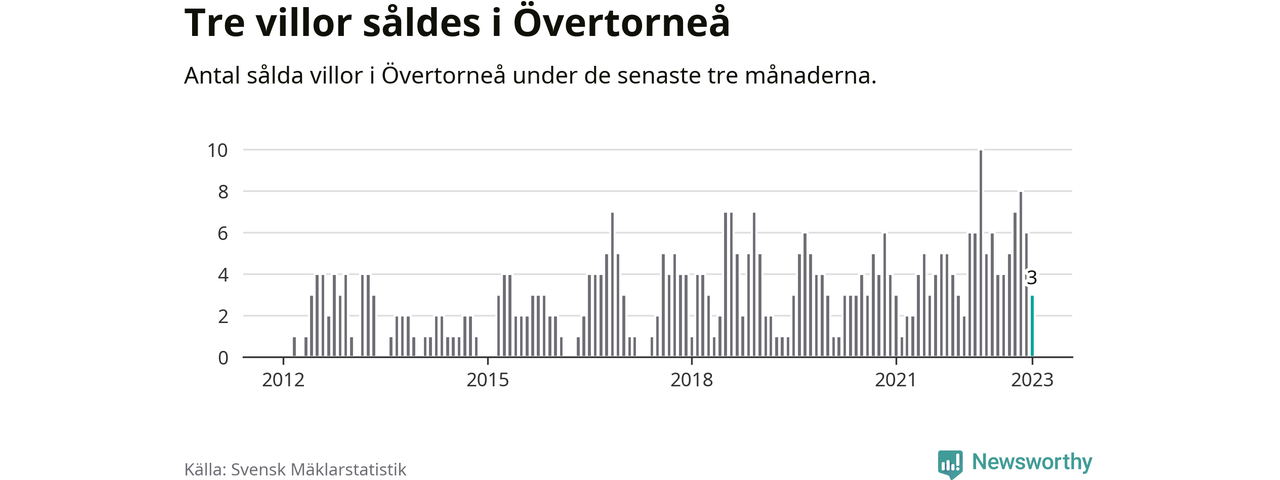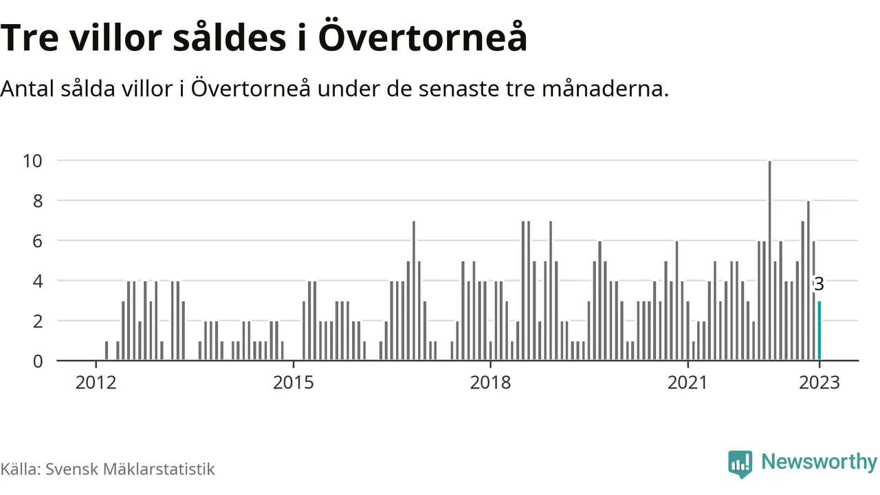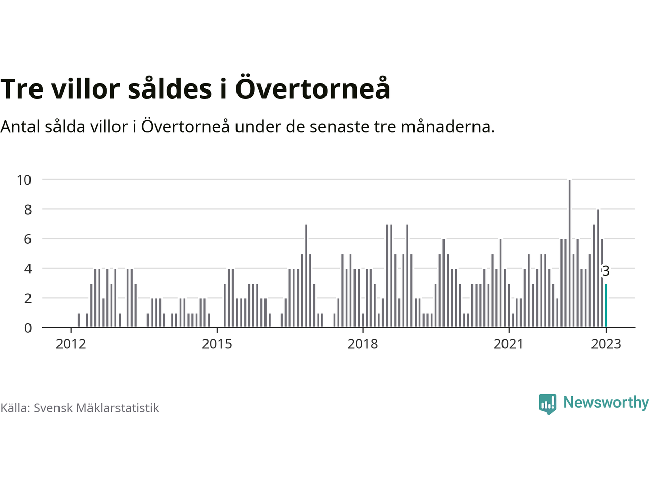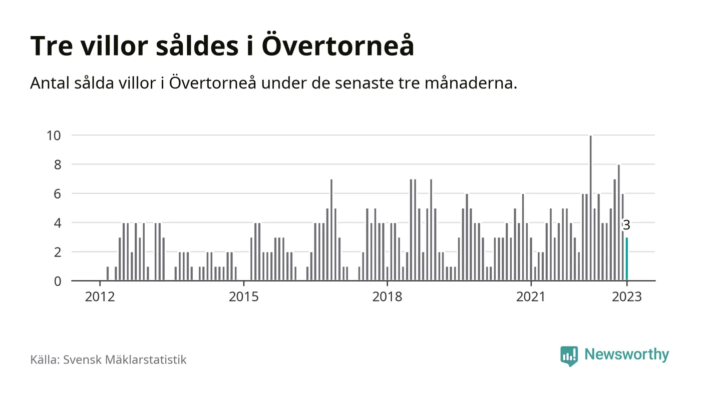 Mellan november och januari gjordes sammanlagt tre affärer med villor i Övertorneå kommun. Det kan jämföras med två vid motsvarande tid i fjol.