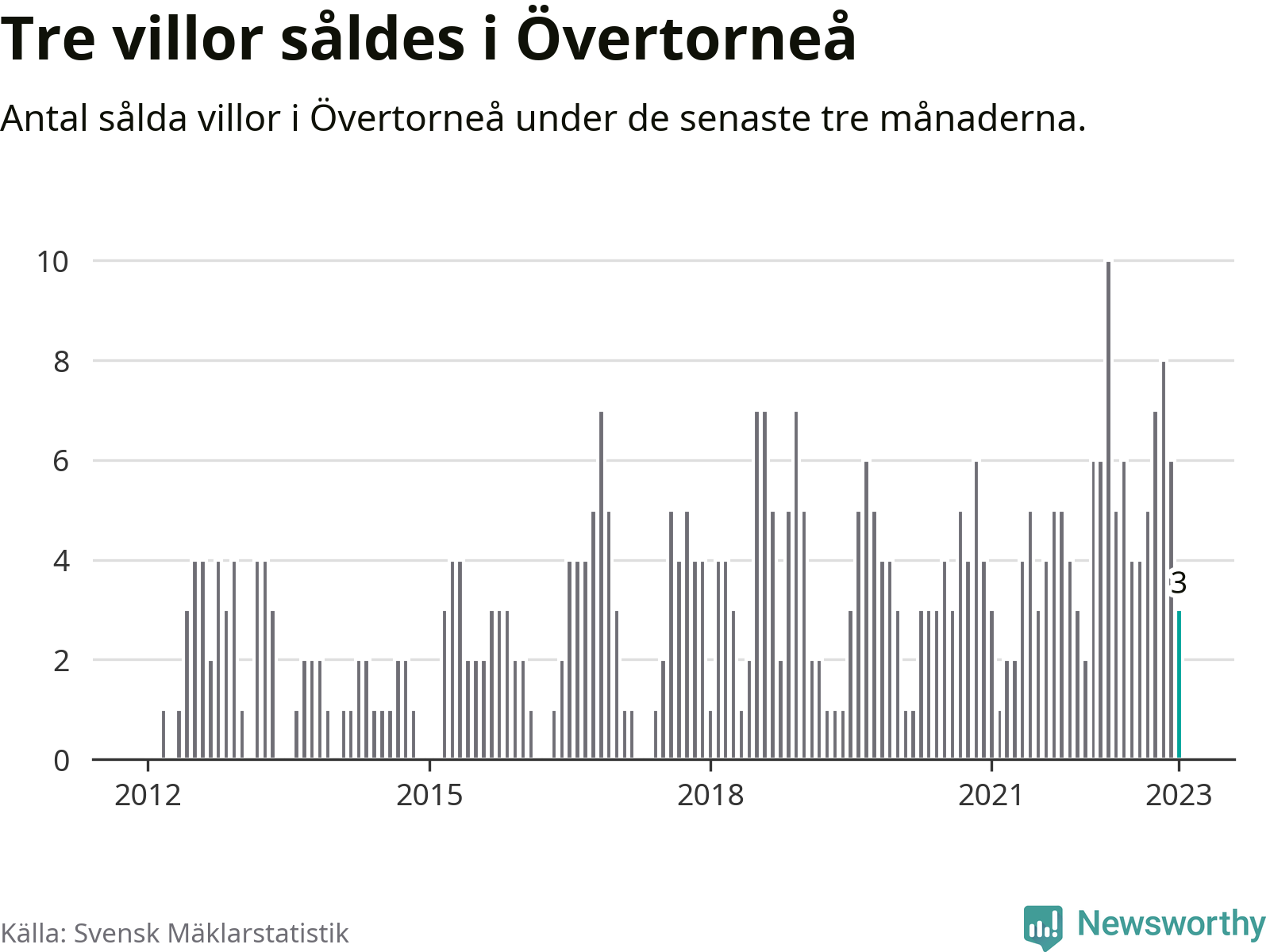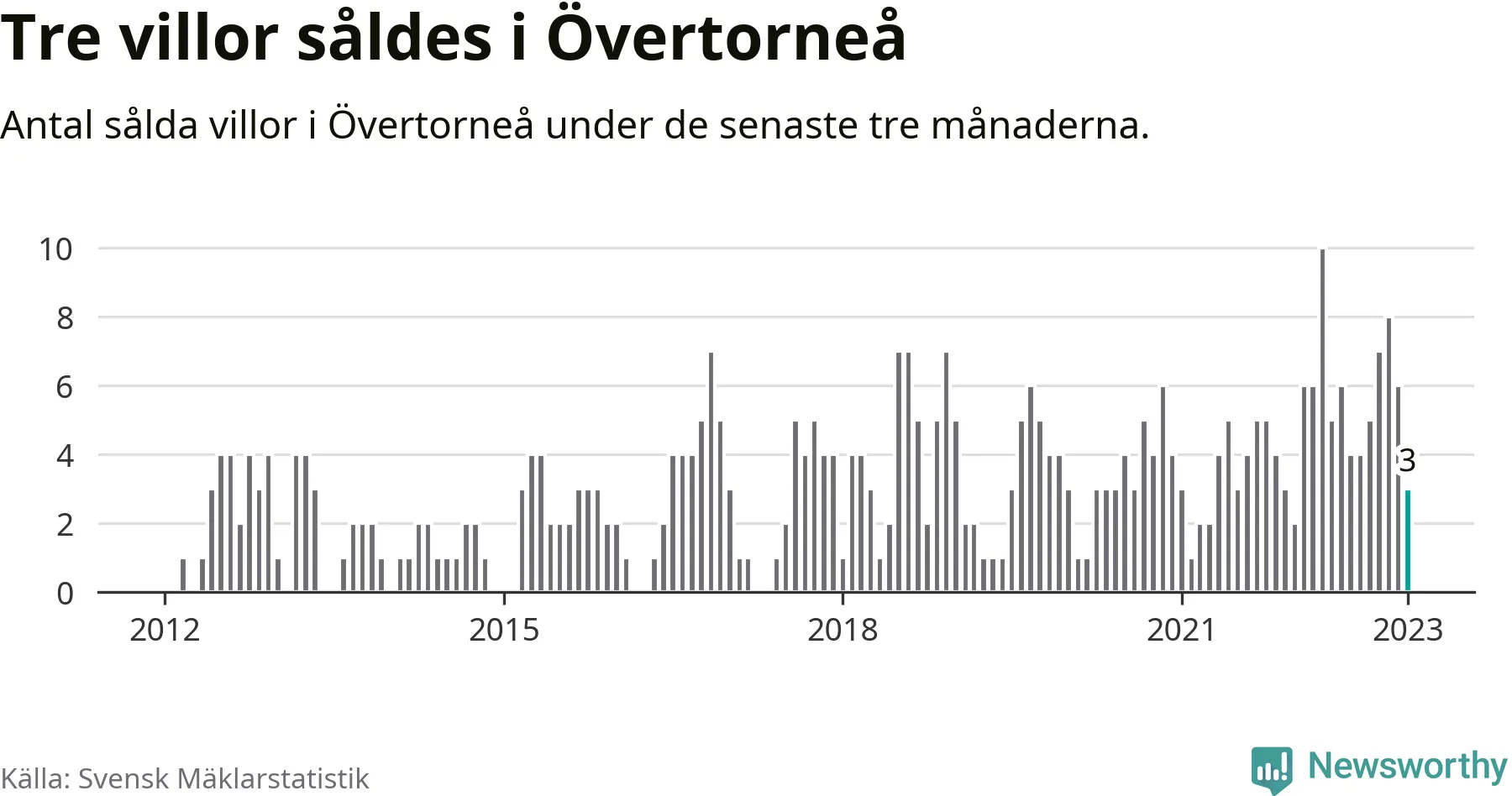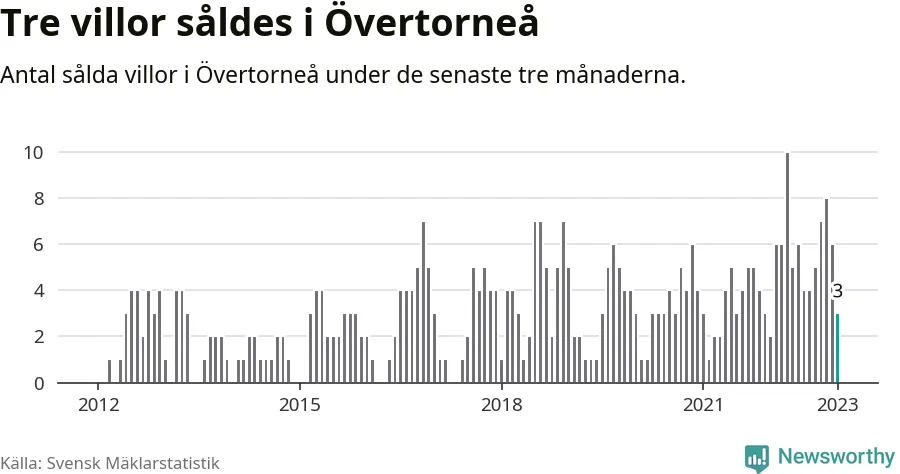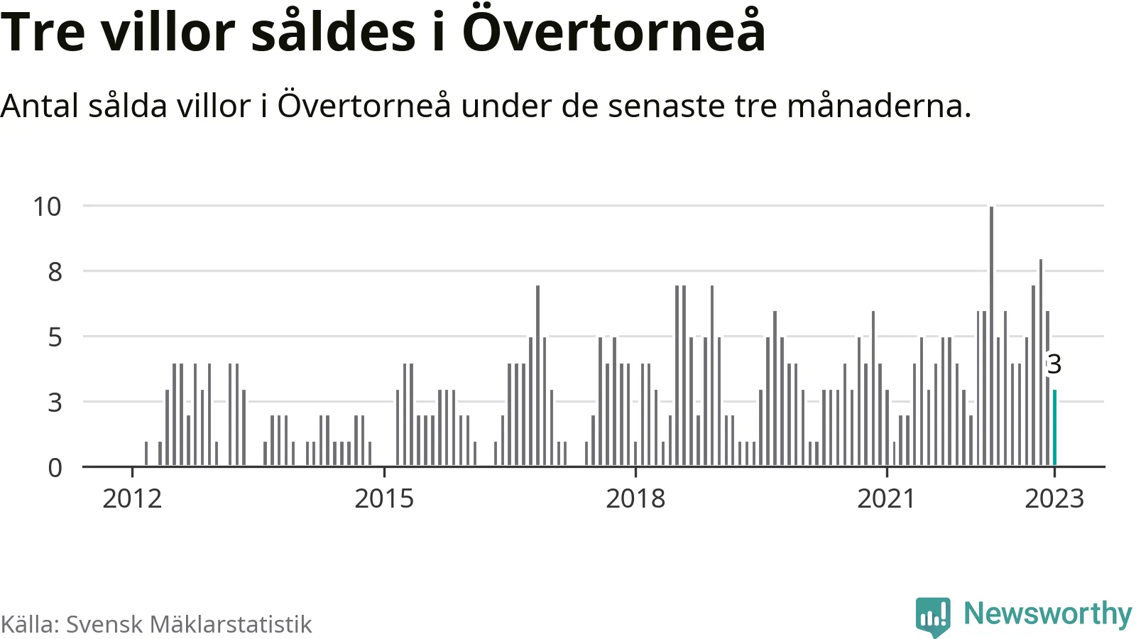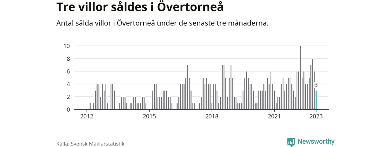 Mellan november och januari gjordes sammanlagt tre affärer med villor i Övertorneå kommun. Det kan jämföras med två vid motsvarande tid i fjol.