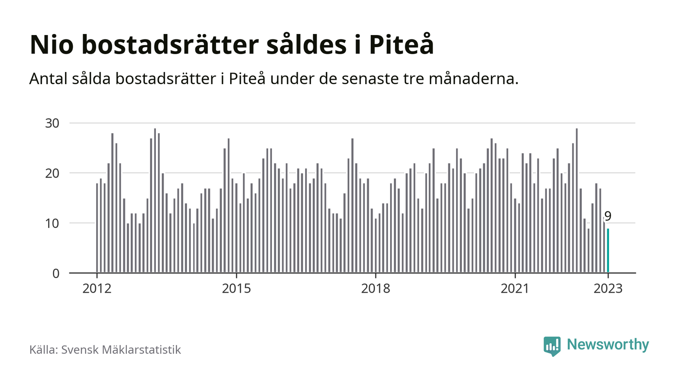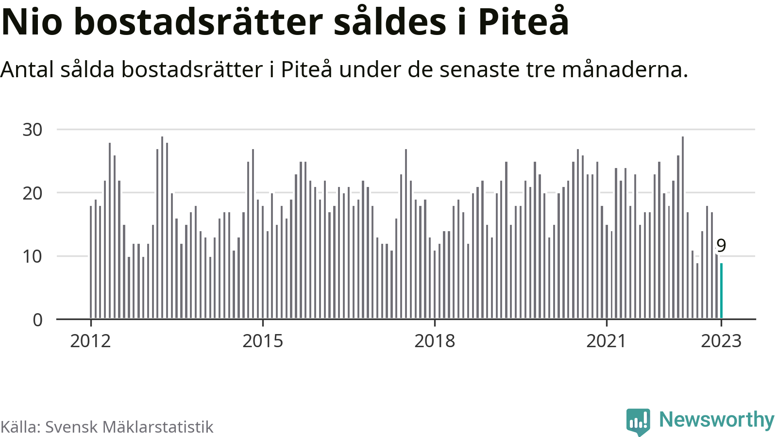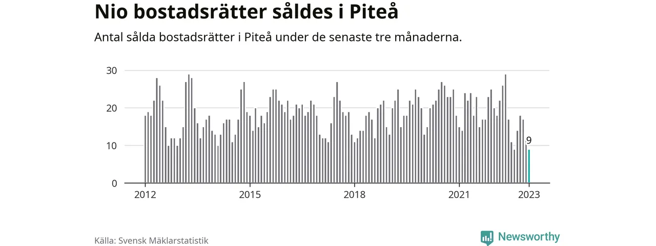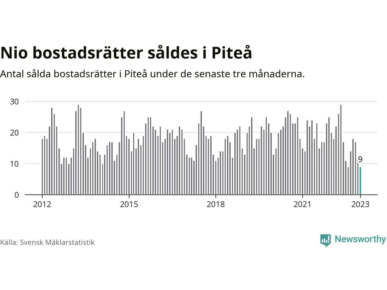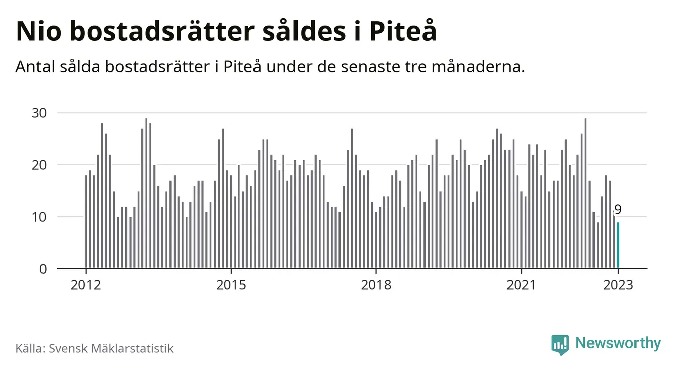 Mellan november och januari gjordes sammanlagt nio affärer med bostadsrätter i Piteå kommun. Det kan jämföras med 20 vid motsvarande tid i fjol.