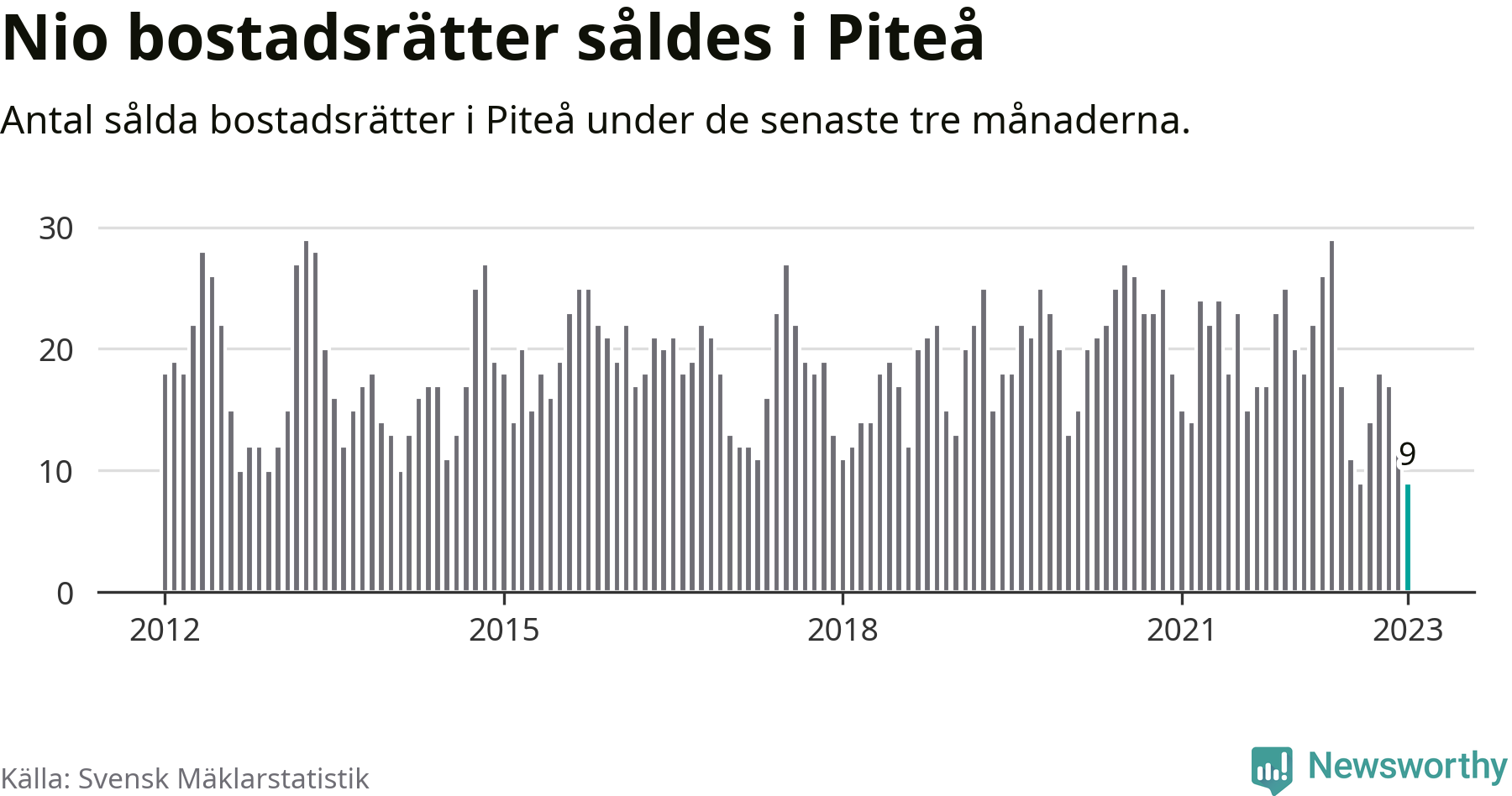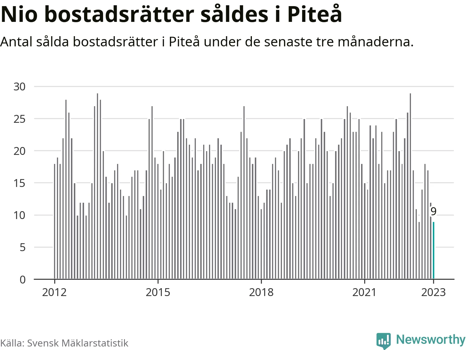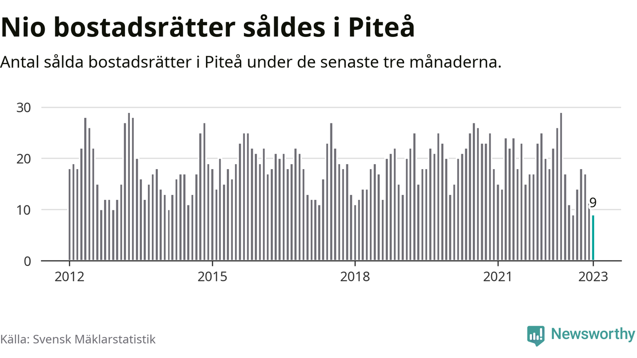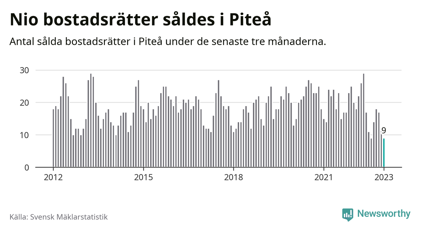 Mellan november och januari gjordes sammanlagt nio affärer med bostadsrätter i Piteå kommun. Det kan jämföras med 20 vid motsvarande tid i fjol.
