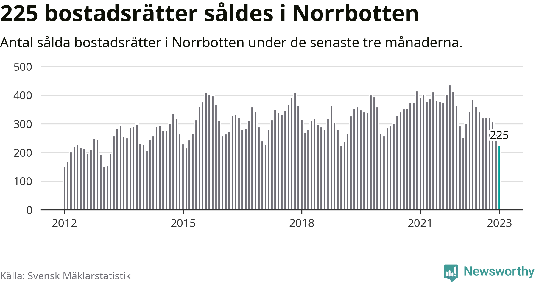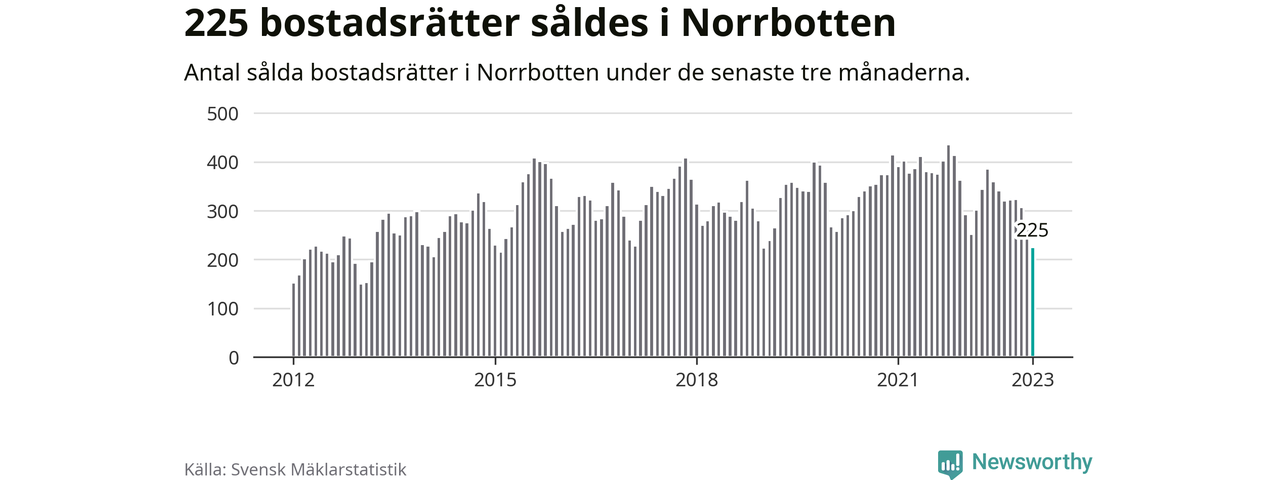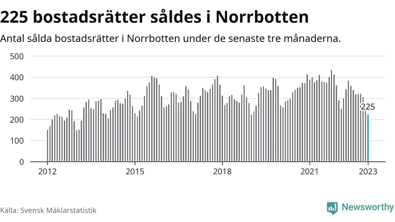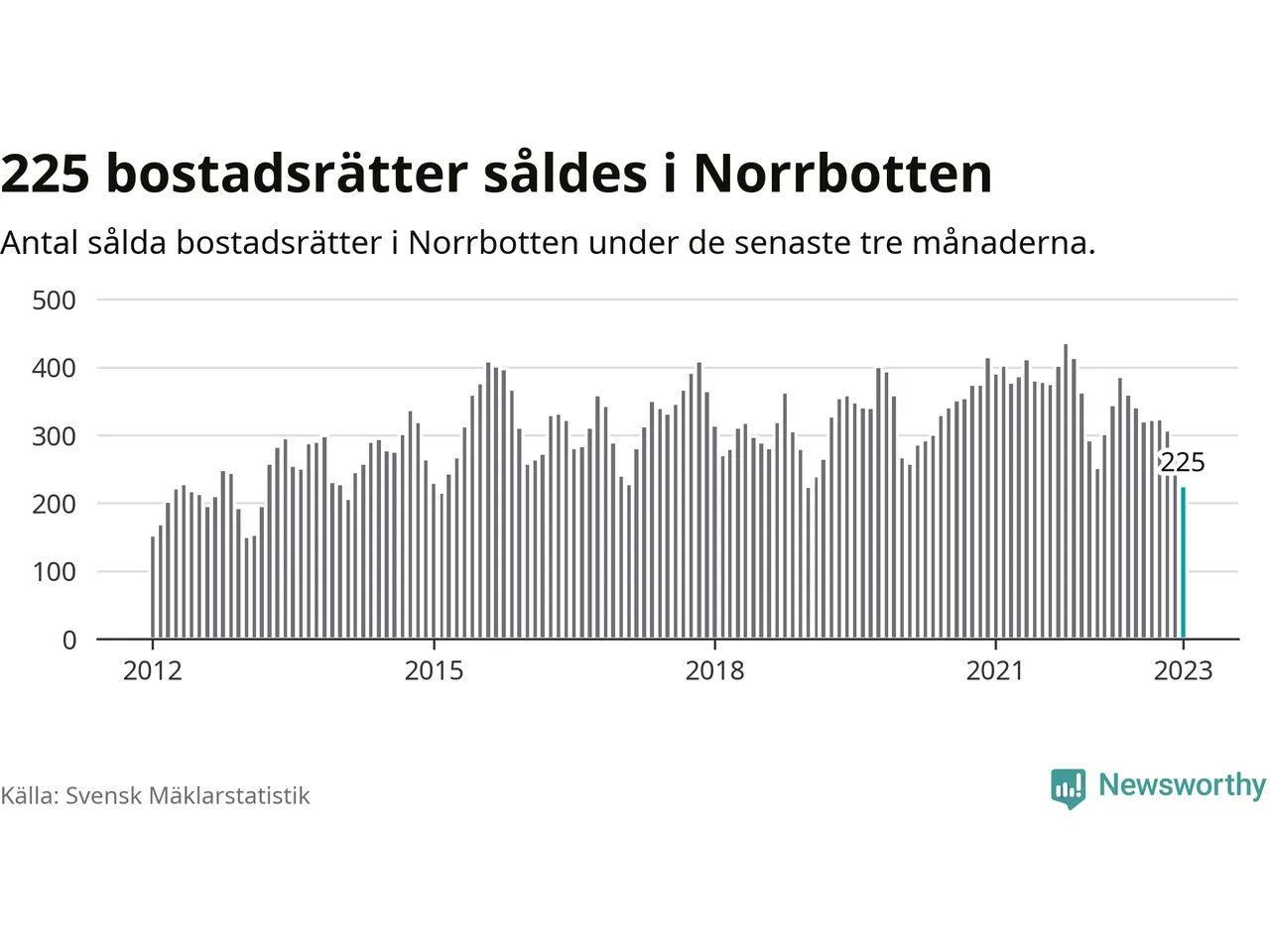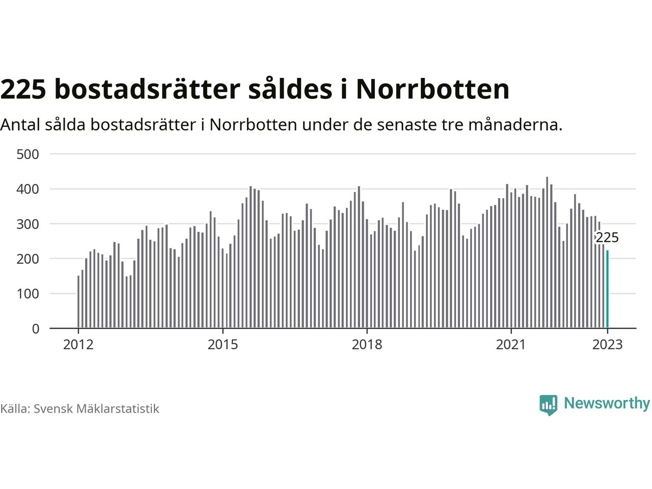 Mellan november och januari såldes 225 bostadsrätter i Norrbottens län. Det är färre än någon tremånadersperiod sedan 2019.