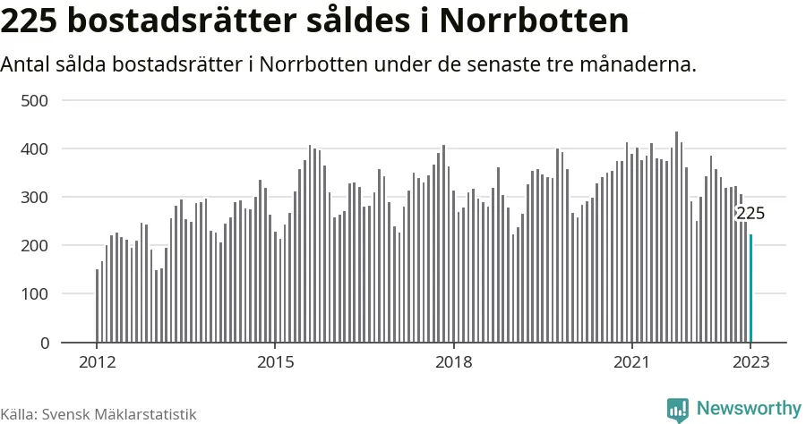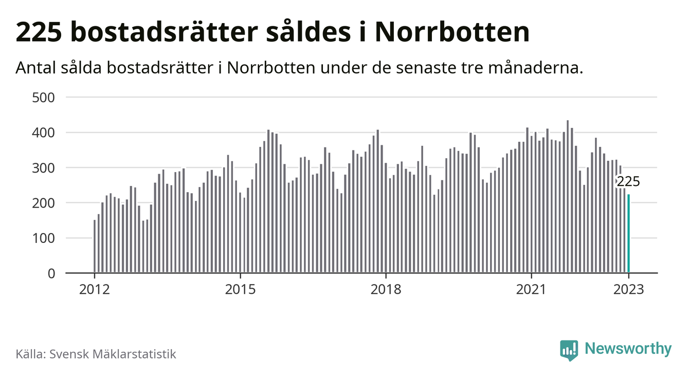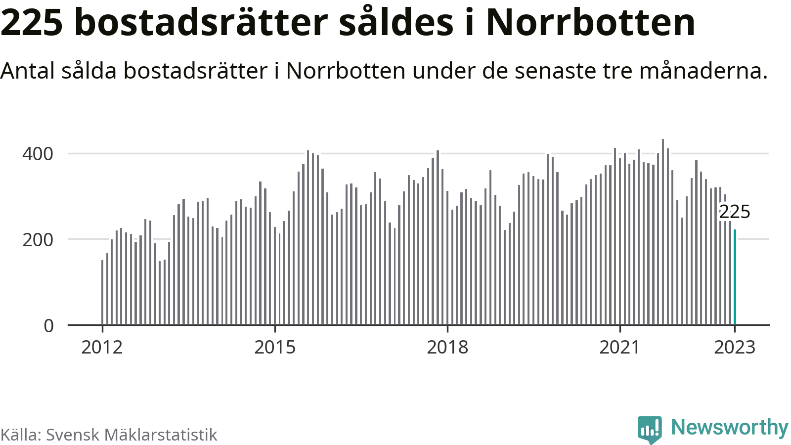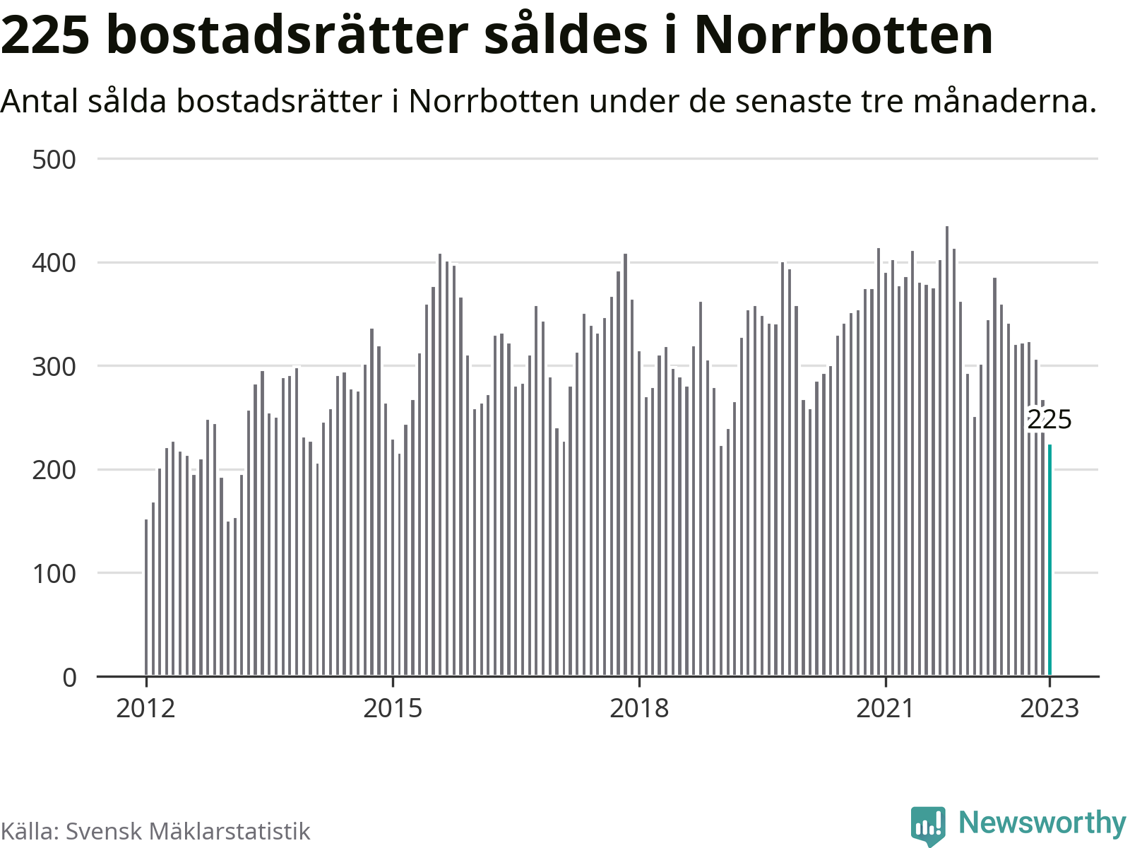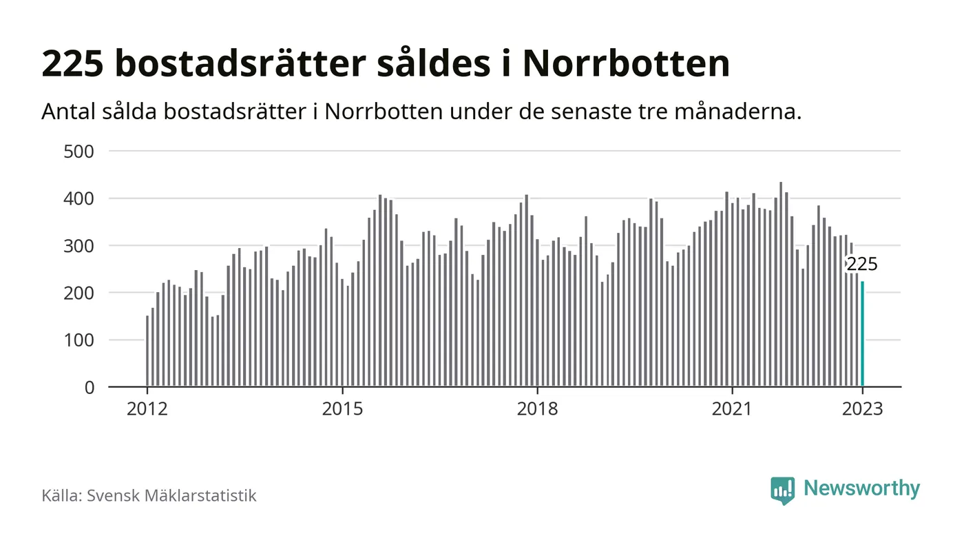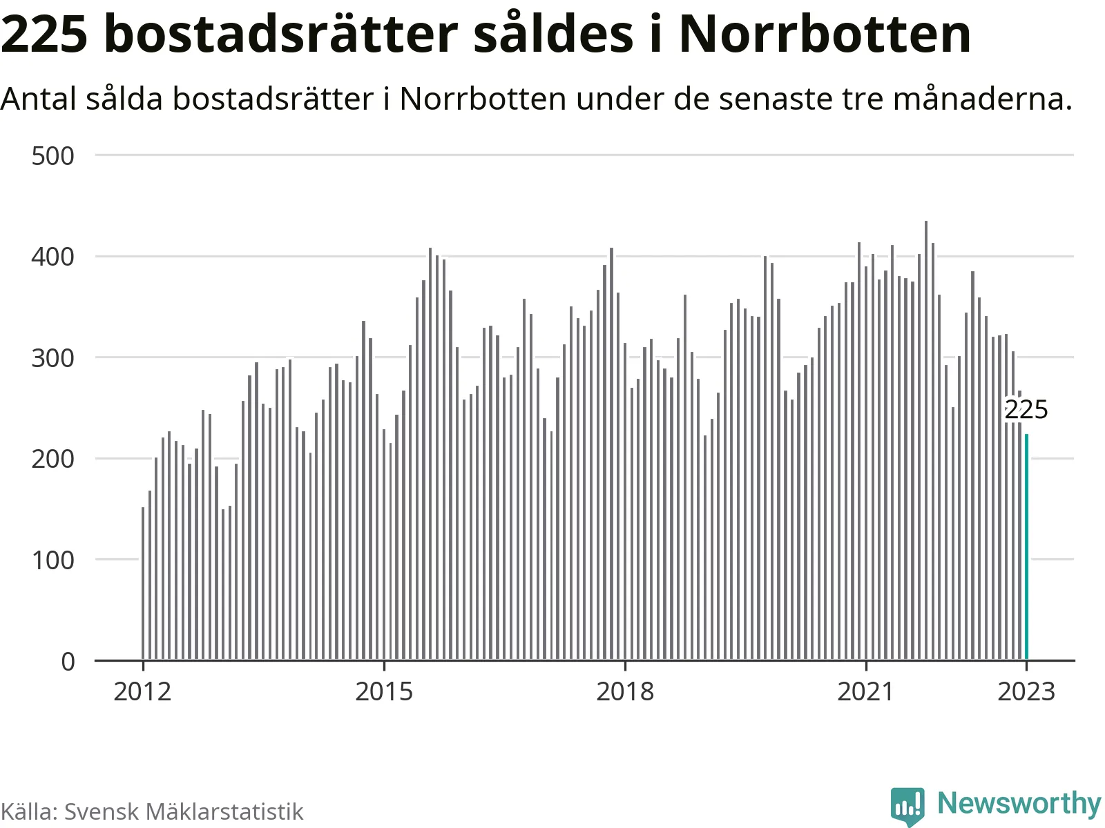 Mellan november och januari såldes 225 bostadsrätter i Norrbottens län. Det är färre än någon tremånadersperiod sedan 2019.