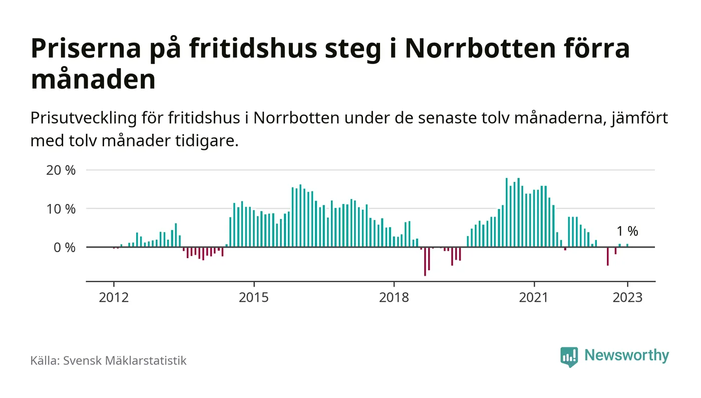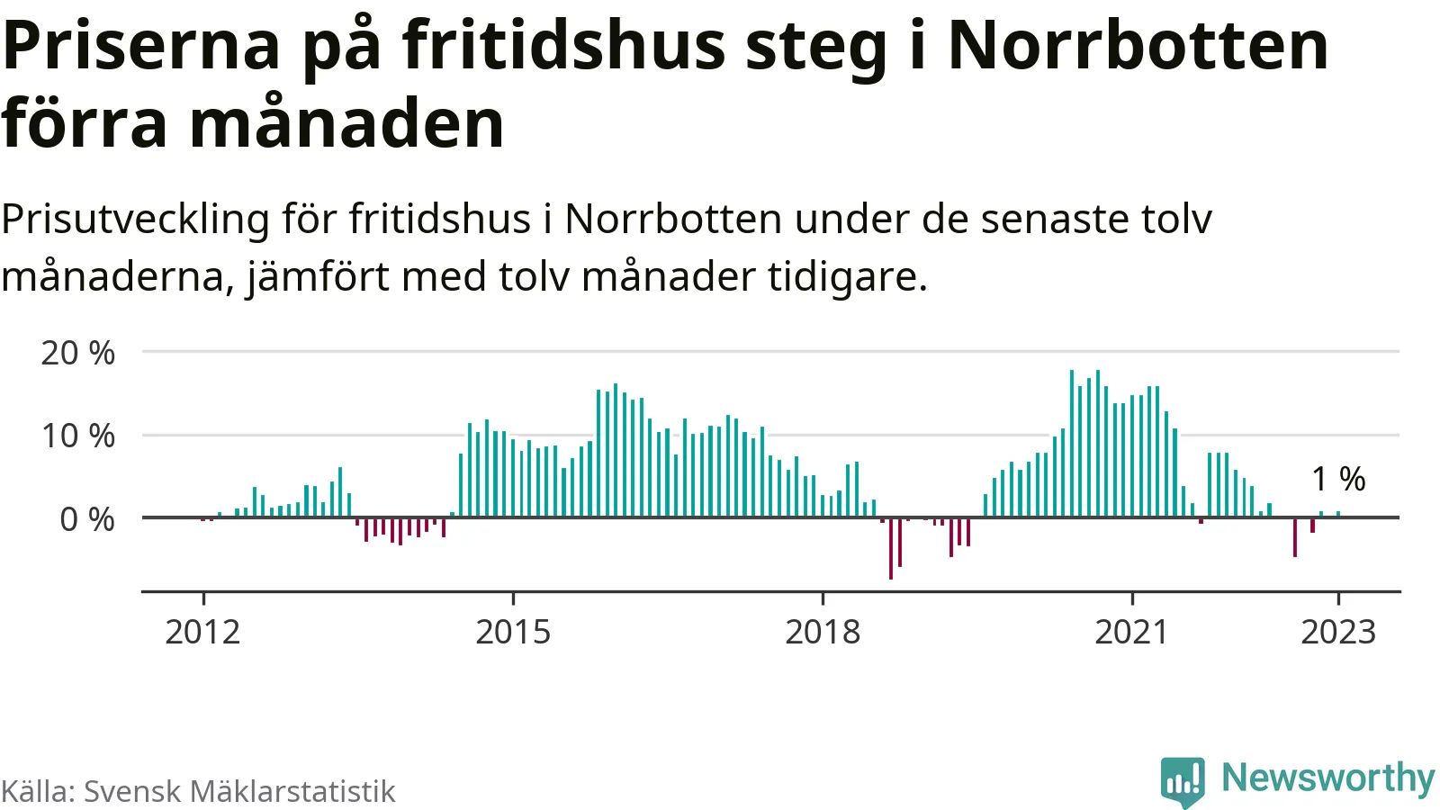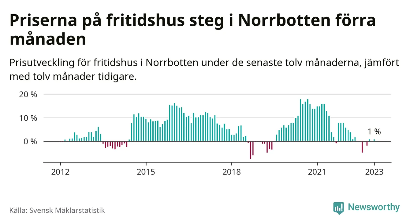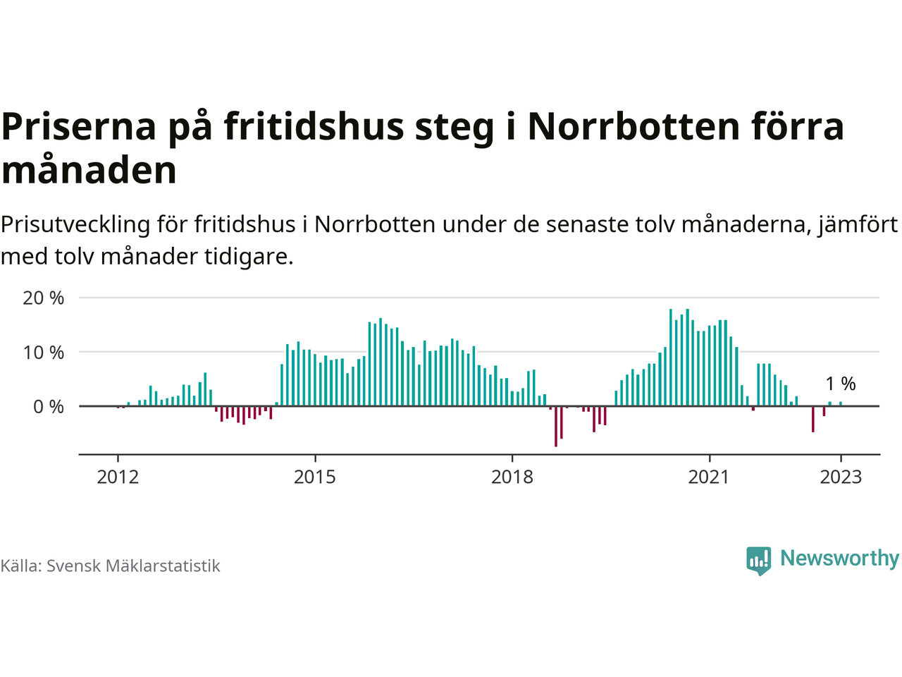 Priserna på fritidshus har gått upp i Norrbottens län. Medelpriset på försäljningarna under de senaste tolv månaderna visar på en uppgång med 1 procent.