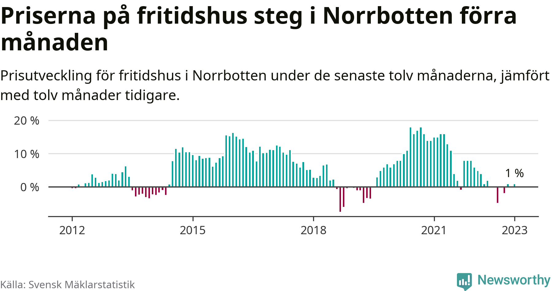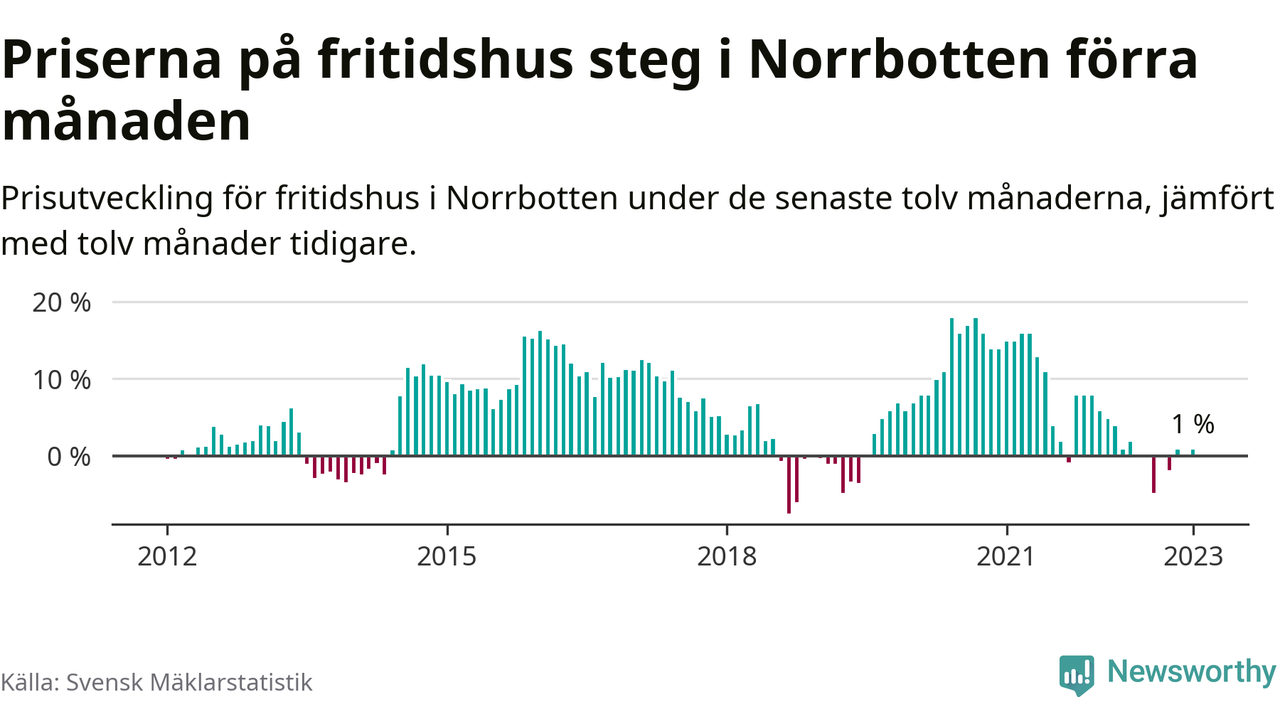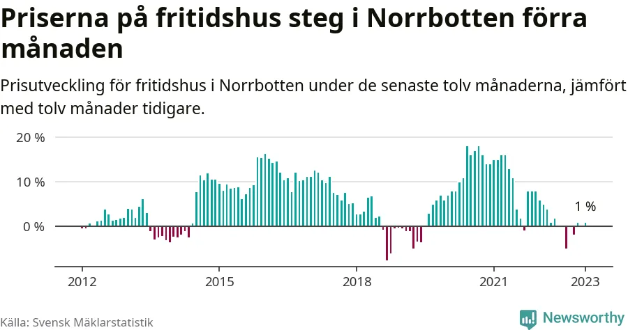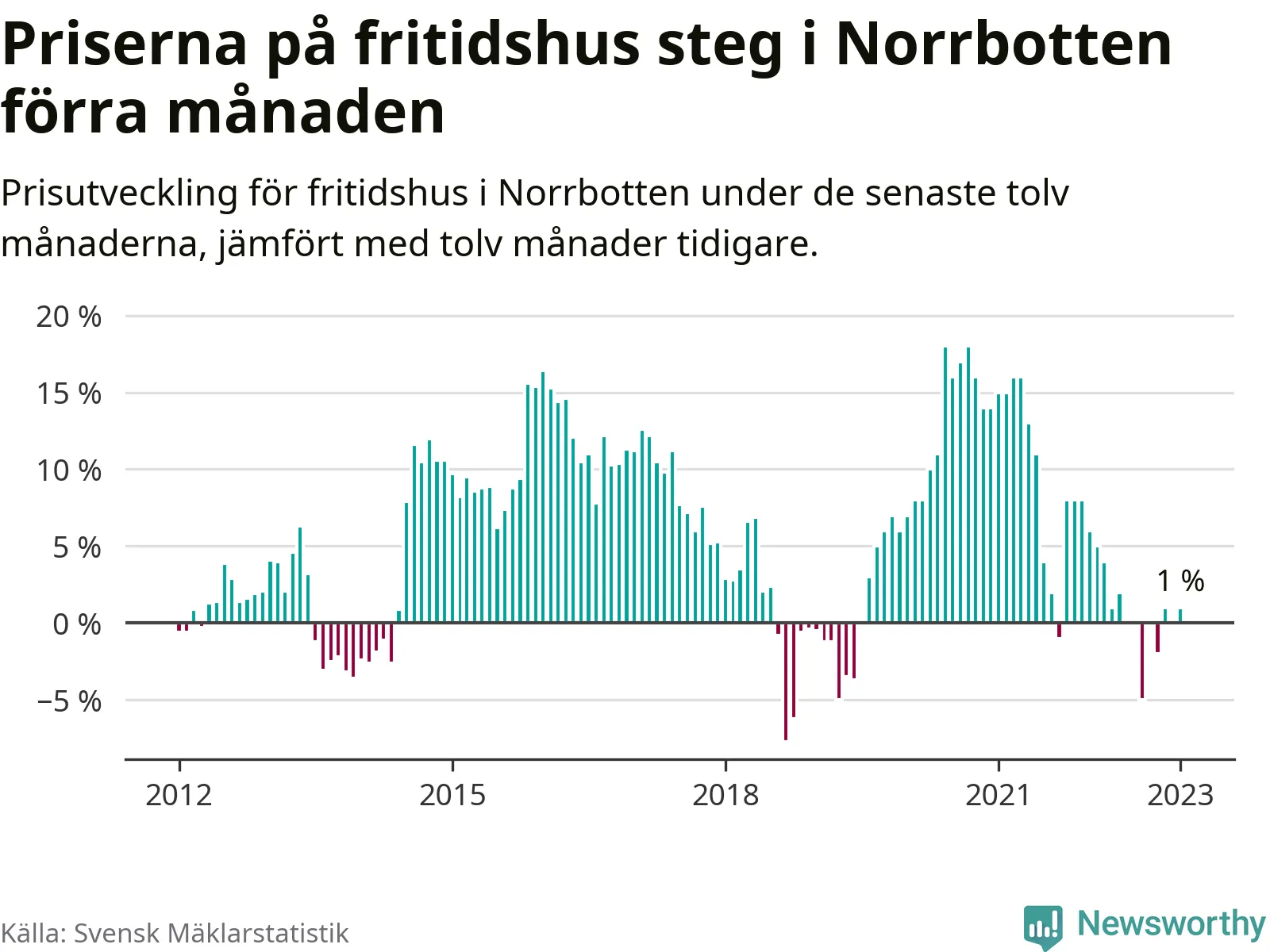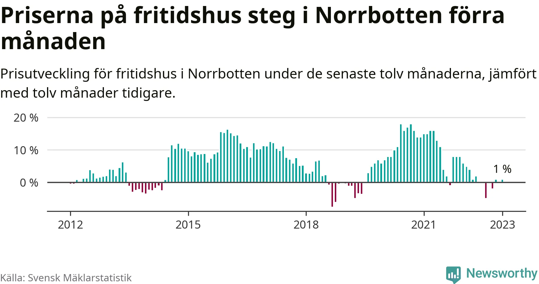 Priserna på fritidshus har gått upp i Norrbottens län. Medelpriset på försäljningarna under de senaste tolv månaderna visar på en uppgång med 1 procent.