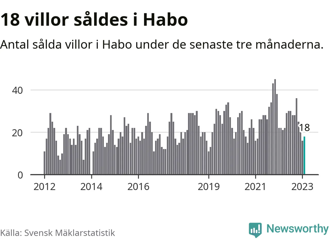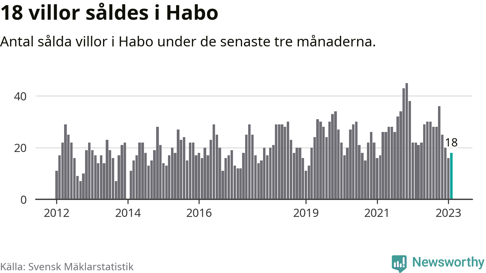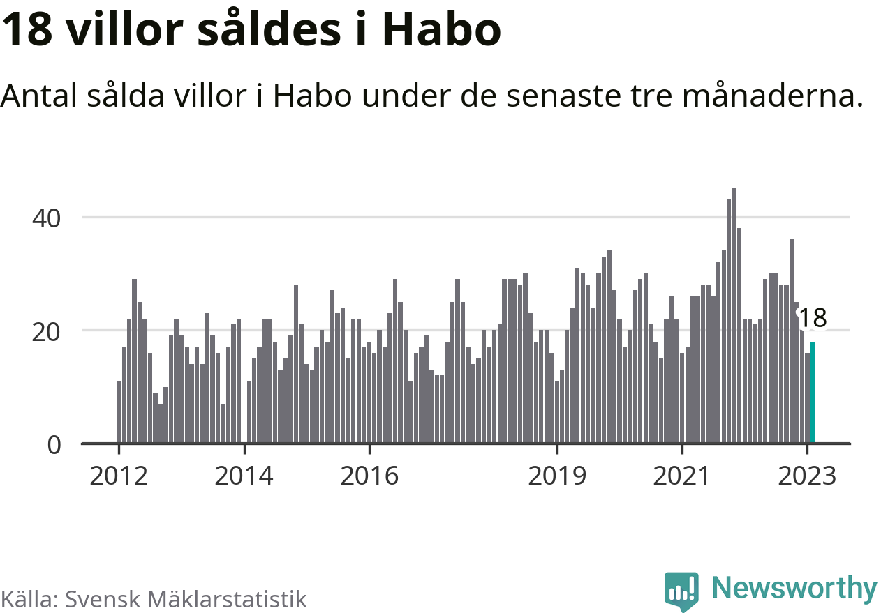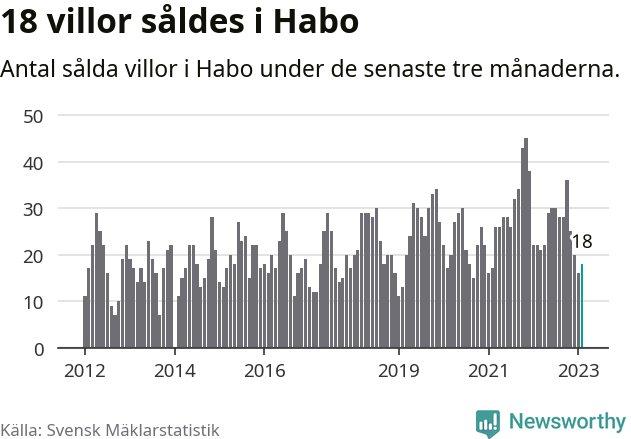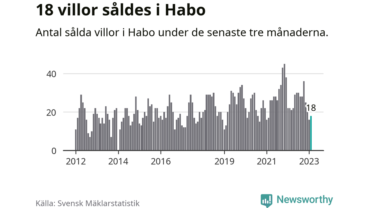 Mellan december och februari gjordes sammanlagt 18 affärer med villor i Habo kommun. Det kan jämföras med 22 vid motsvarande tid i fjol.