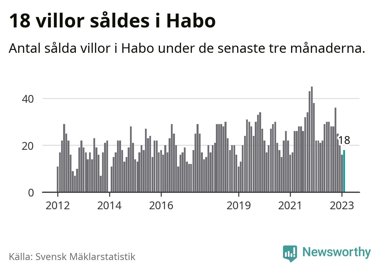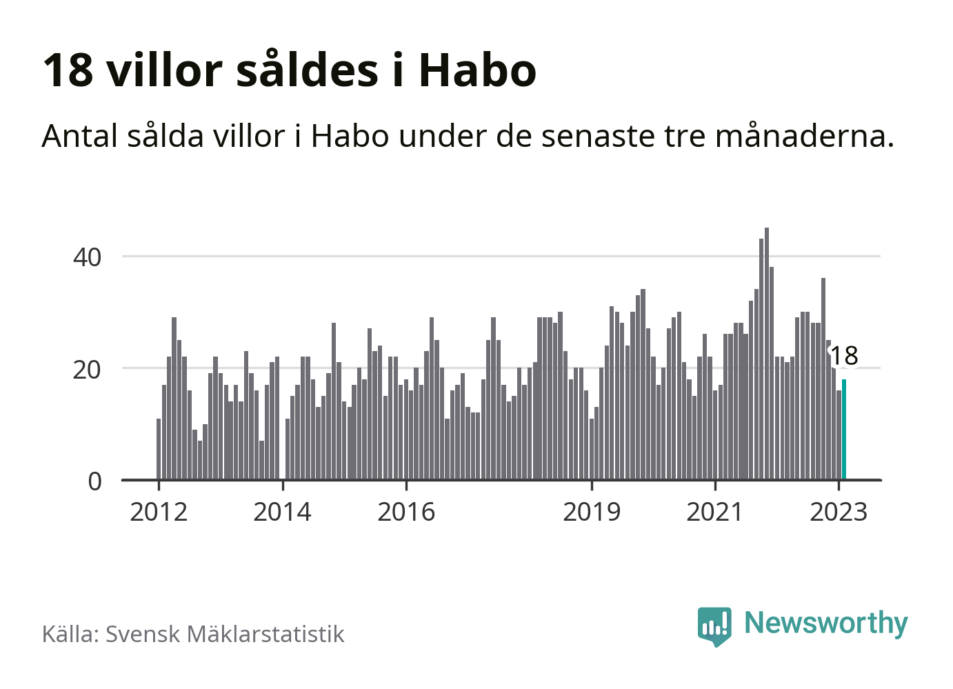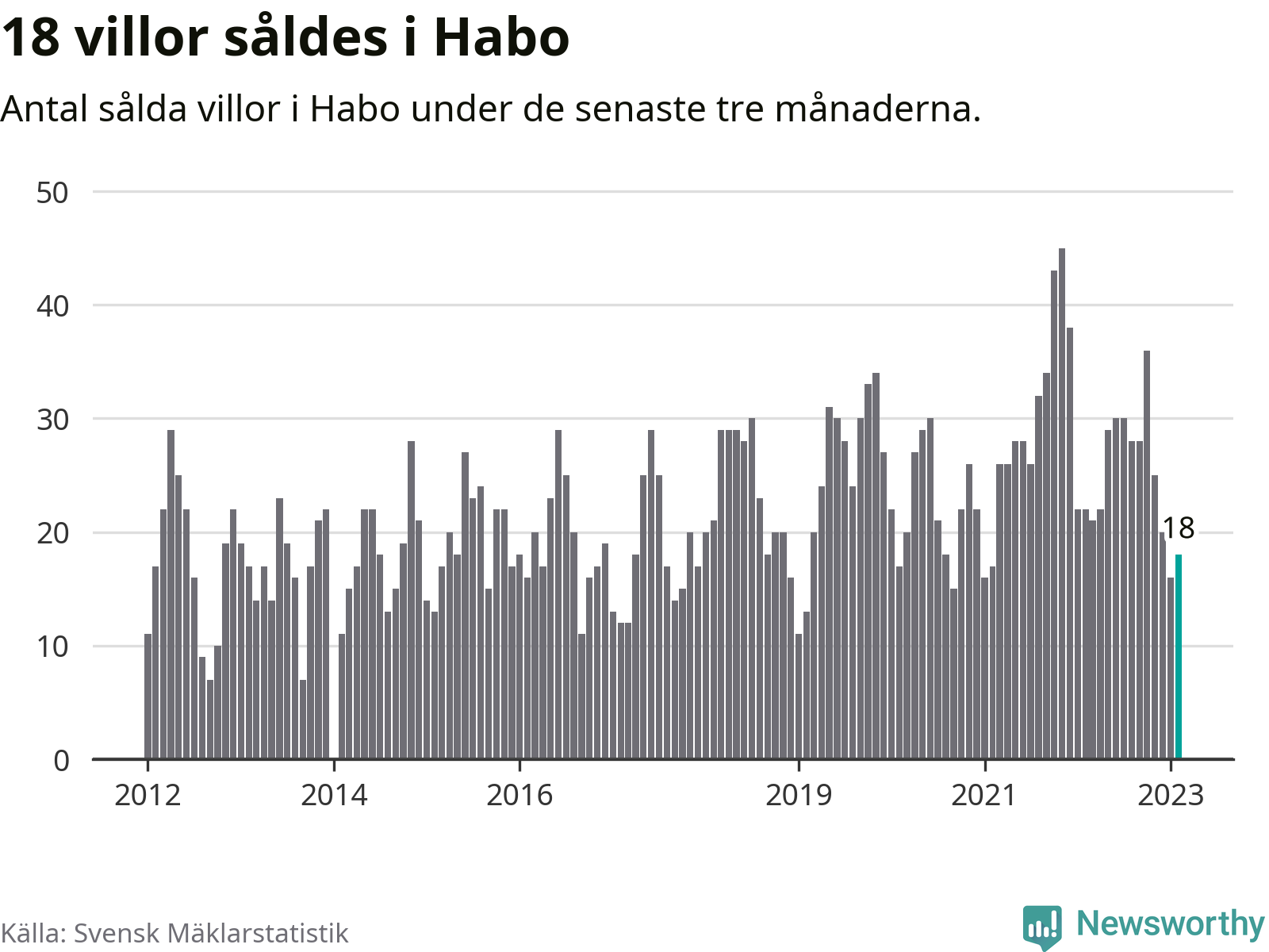 Mellan december och februari gjordes sammanlagt 18 affärer med villor i Habo kommun. Det kan jämföras med 22 vid motsvarande tid i fjol.