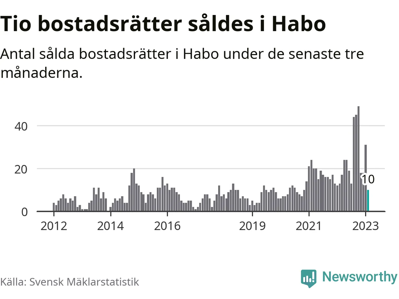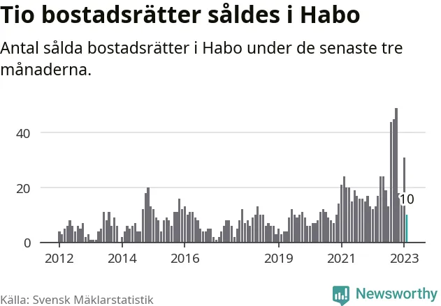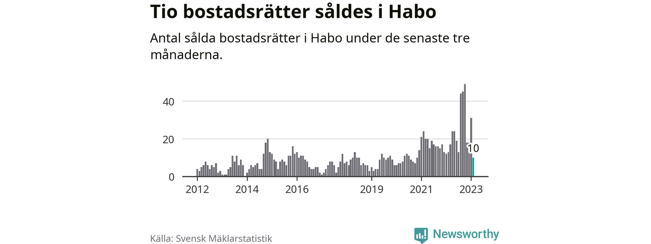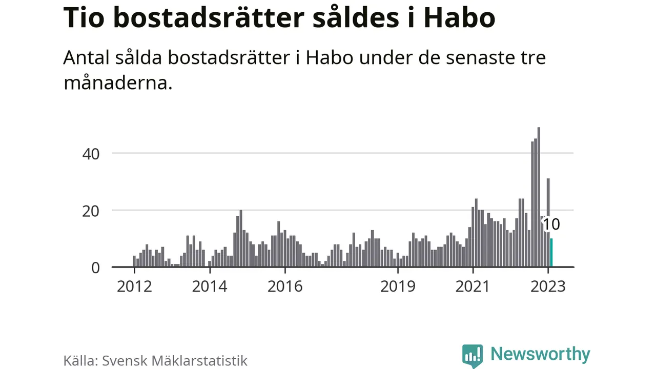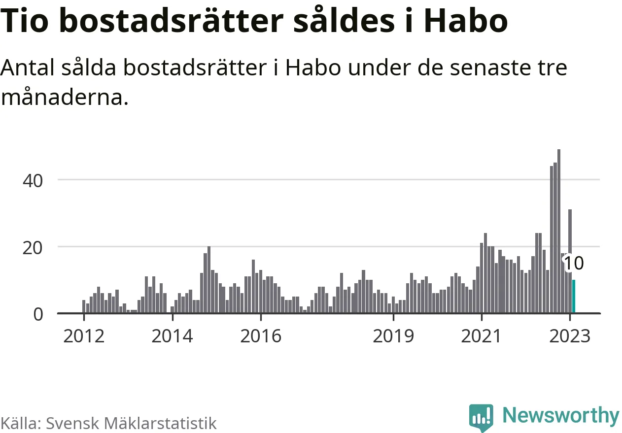 Mellan december och februari gjordes sammanlagt tio affärer med bostadsrätter i Habo kommun. Det kan jämföras med 13 vid motsvarande tid i fjol.