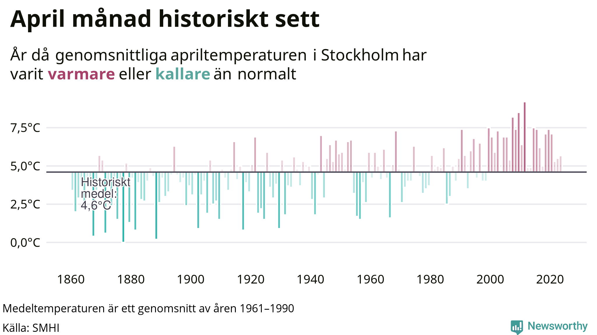 Med klimatförändringen kan vi förvänta oss gradvis varmare temperaturer. Under det senaste decenniet har april varit varmare än snittet tio av tio år i Stockholm.